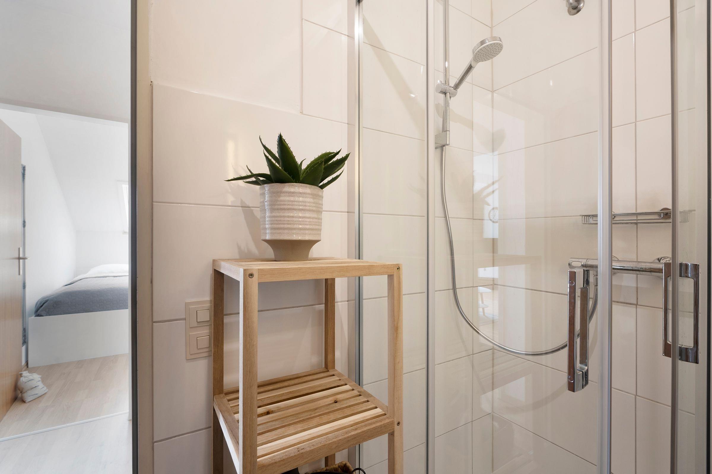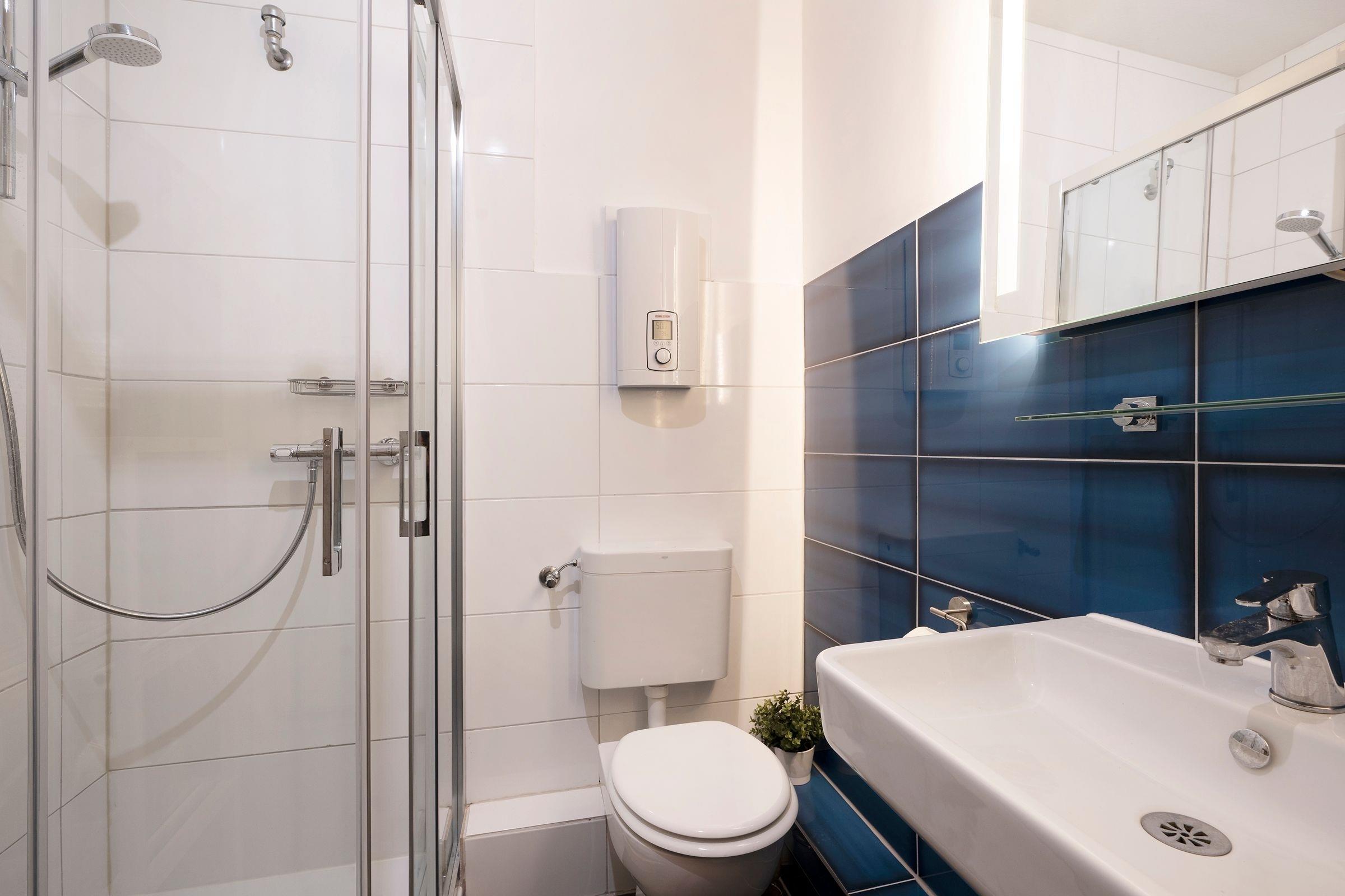 Im 2. Stock gelegen empfängt Sie diese 2-Zimmer-Wohnung mit einer Wohnfläche von ca. 45m² und ausreichend Platz für bis zu 4 Personen. Das Domizil teilt sich auf in ein großzügiges Wohnzimmer mit komfortablem Schlafsofa (140x200cm) und direktem Zugang zum möbliertem Balkon, eine separate, gut ausgestattete Küche, ein separates Schlafzimmer mit 2 Einzelbetten (90x200cm) und Kleiderschrank, sowie ein Duschbad. Im Außenbereich schützen eine Markise und ein Sonnenschirm im Sommer vor zu starker Sonneneinstrahlung. Der lichtdurchflutete Wohnbereich umfasst einen integrierten Essplatz, sowie eine Fernsehecke mit modernem Flachbildfernseher. Das gesamte Interieur Ihrer Ferienwohnung ist geschmackvoll und freundlich gestaltet.