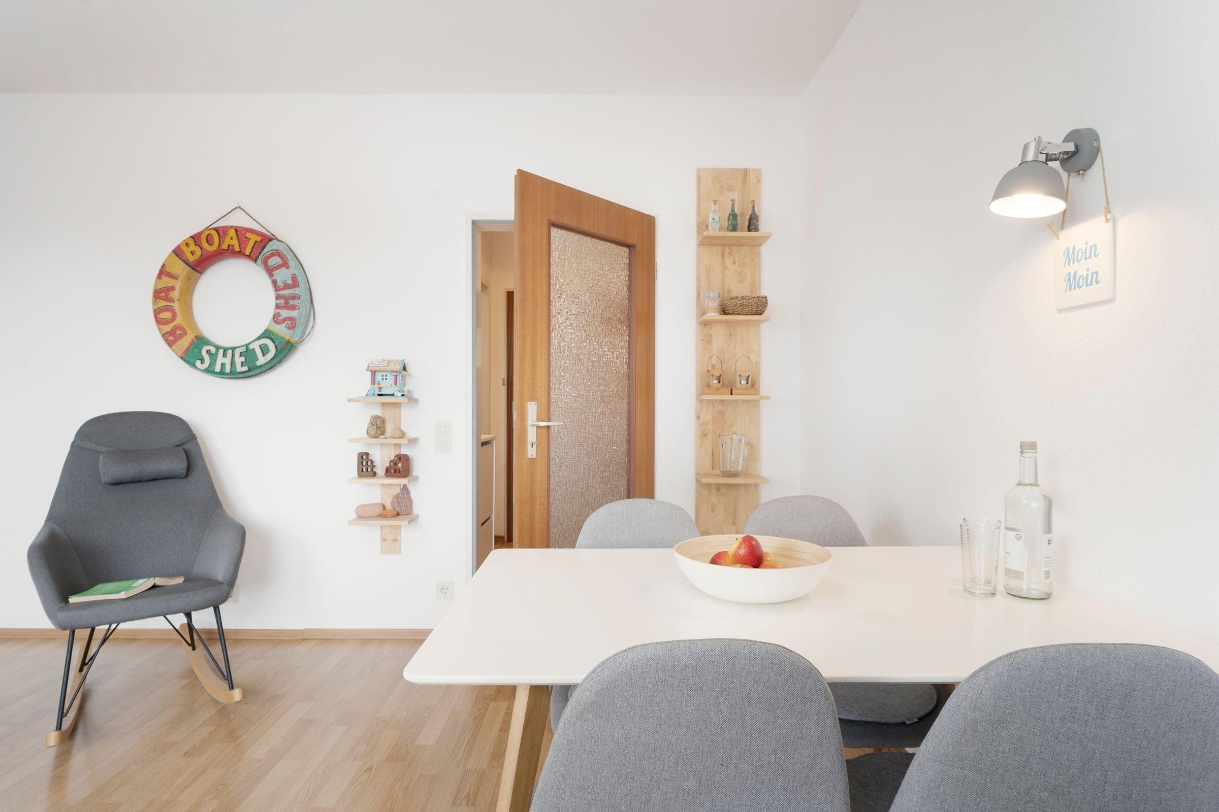 Ein eigener PKW-Außenstellplatz und ein gemeinschaftlicher Fahrradkeller sind vorhanden. Im Keller des Hauses stehen den Gästen des Hauses Seedeich eine Waschmaschine und ein Trockner zur gemeinschaftlichen Nutzung zur Verfügung. Eine Tischtennisplatte ist ebenfalls vorhanden. In der Ferienwohnung steht für die kleinen Gäste ein Hochstuhl bereit. Ein kostenfreier WLAN-Anschluss ist hier ebenfalls inklusive.