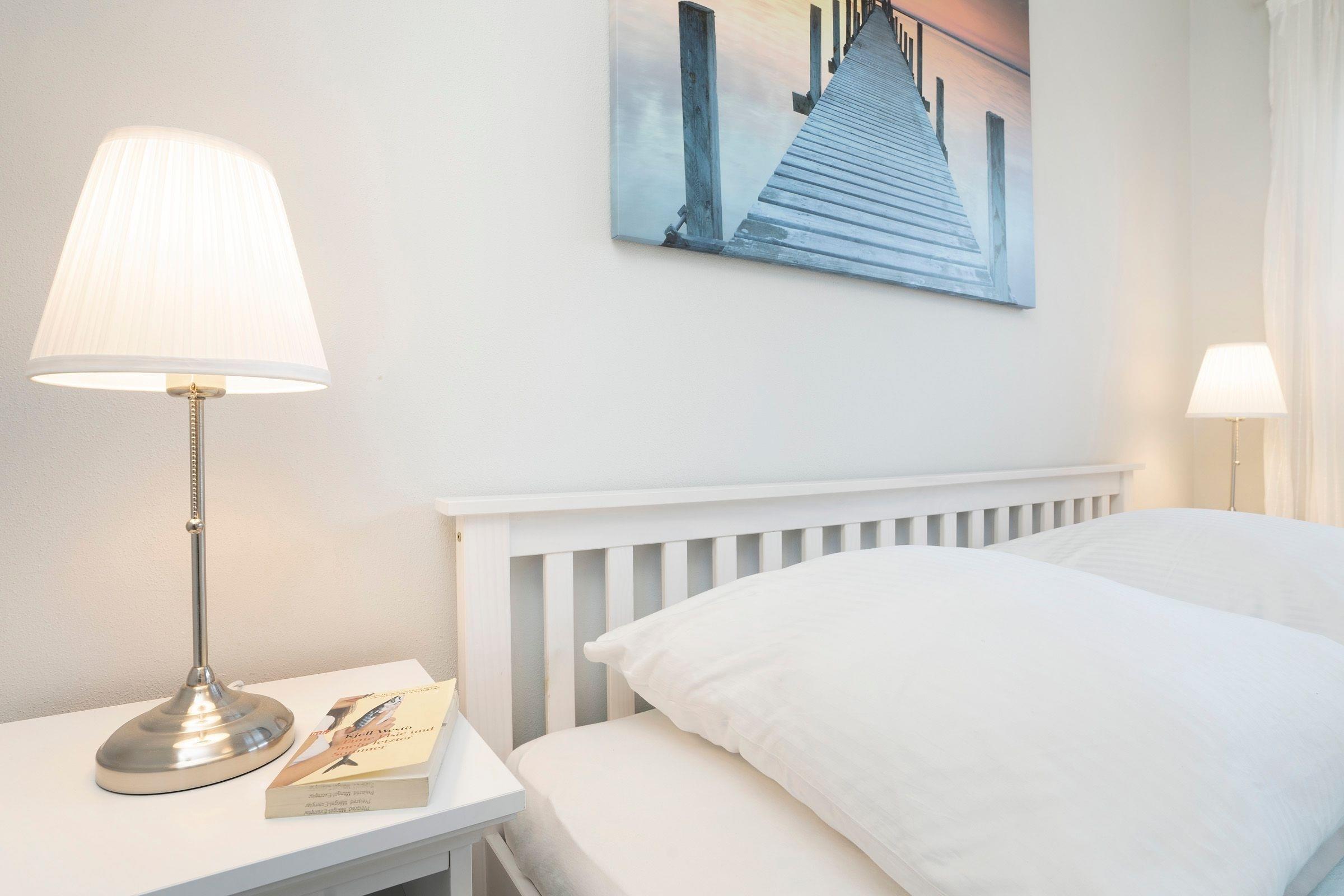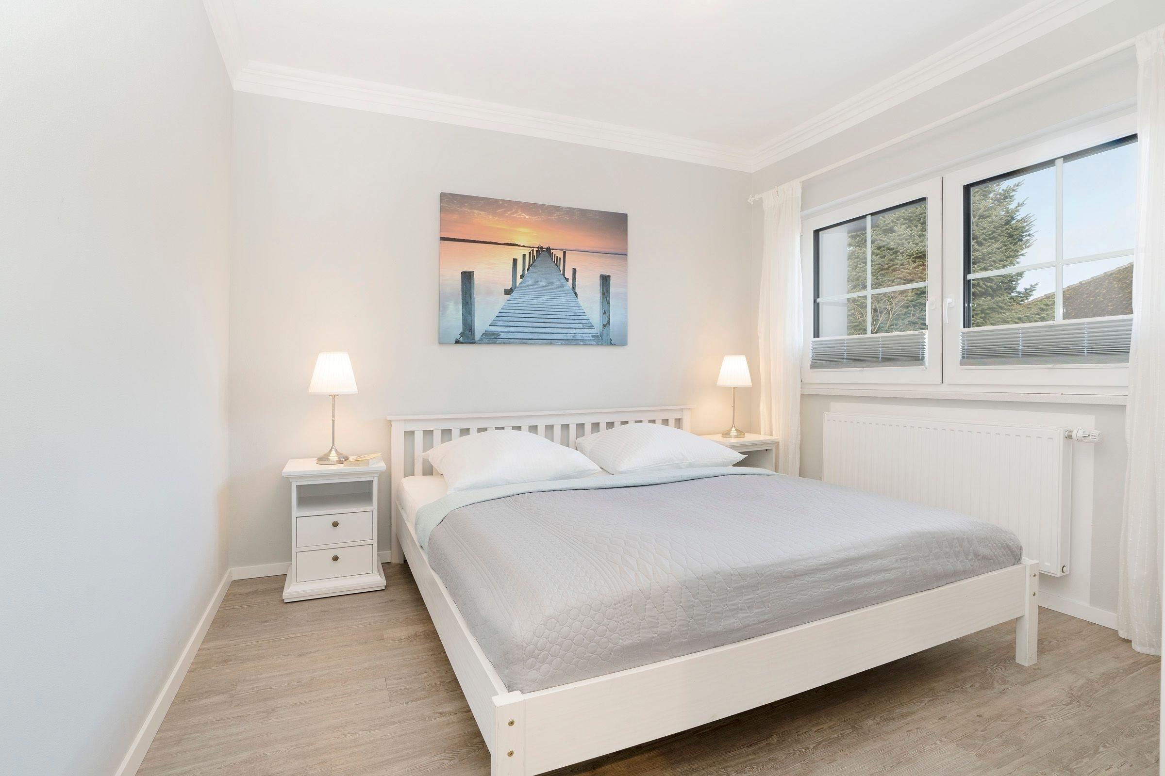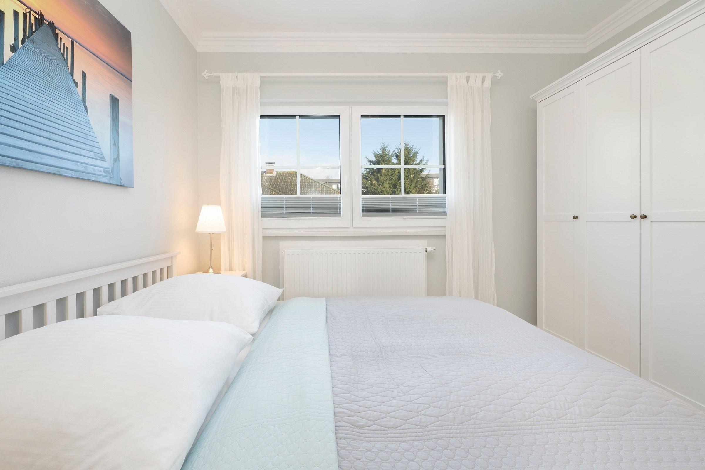 Schlafzimmer 1: 1 Doppelbett (2x 90x200 cm), Kleiderschrank, Lichtschutz (Plissee)