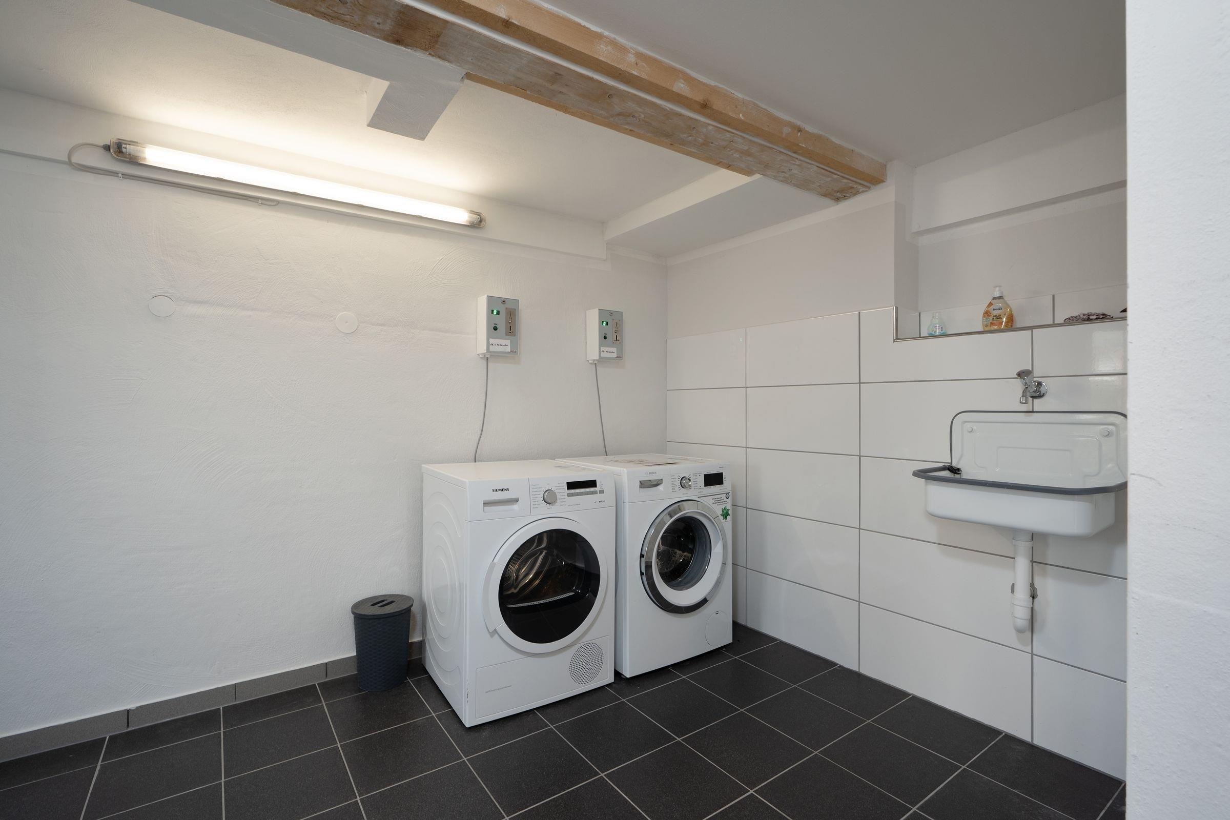 Ein PKW-Außenstellplatz direkt am Haus ist für Sie reserviert. Ihre Fahrräder können Sie sicher im abschließbaren Fahrradabstellraum parken. Den Gäste der Alten Da(h)me stehen gemeinschaftliche genutzte Münzwaschmaschinen und -trockner zur Verfügung.