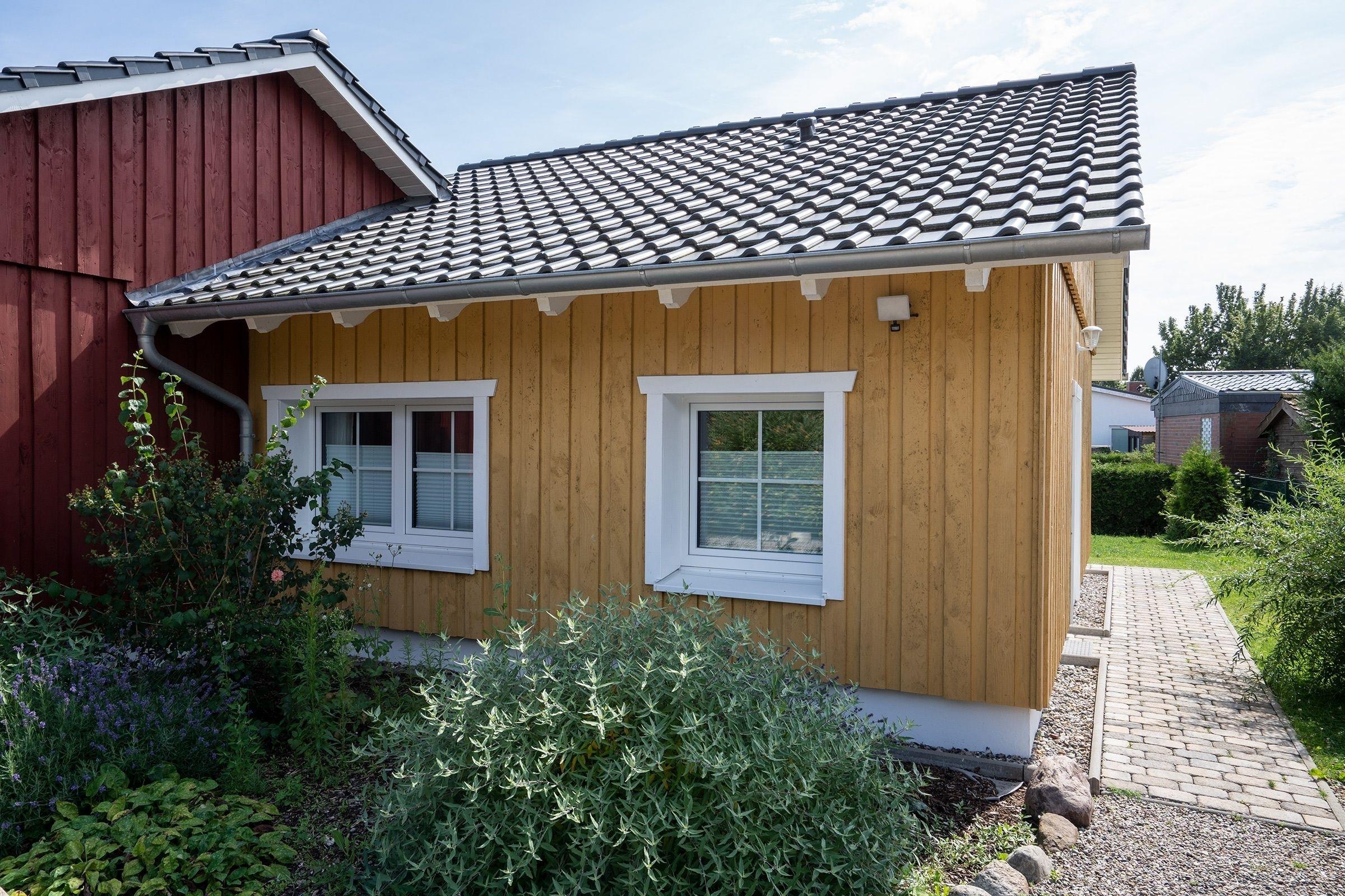 Charmantes Ferienhaus im skandinavischen Stil, strandnah in Dahme, mit Terrasse und Garten für erholsame Ostseeurlaube.