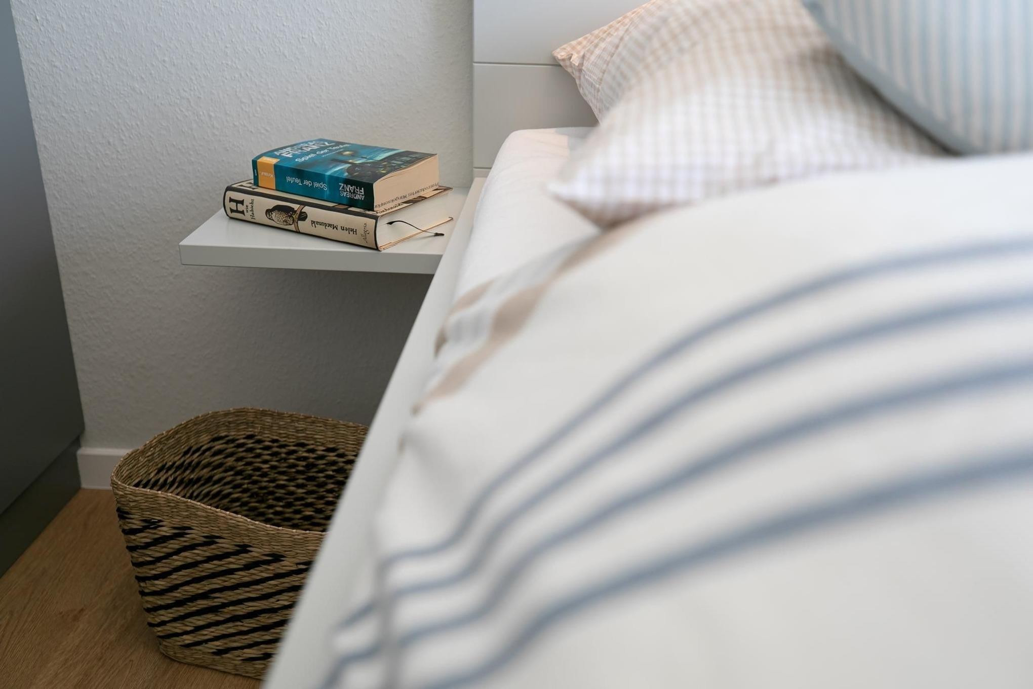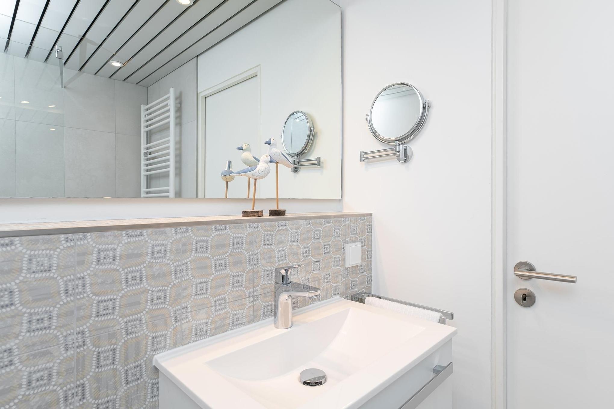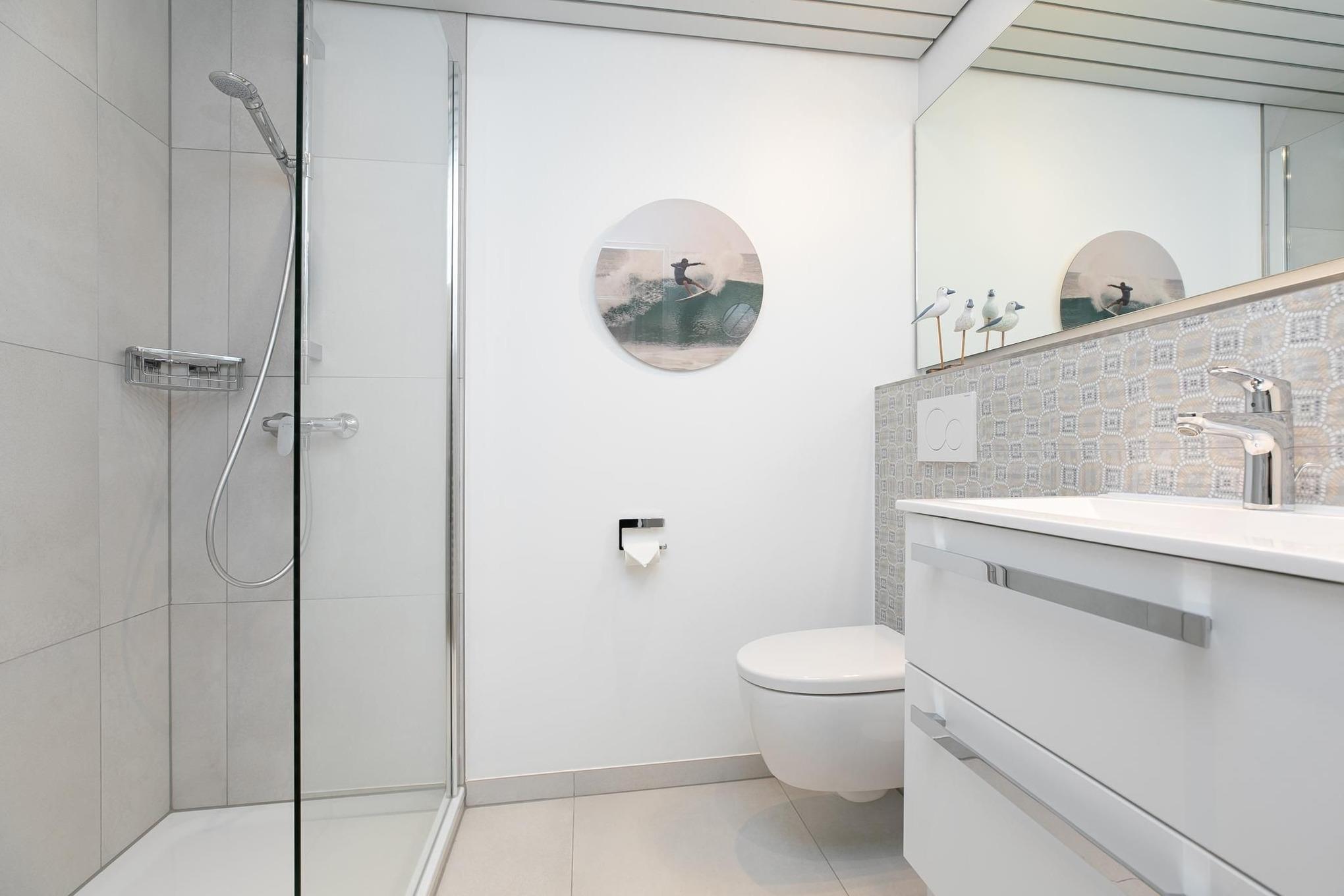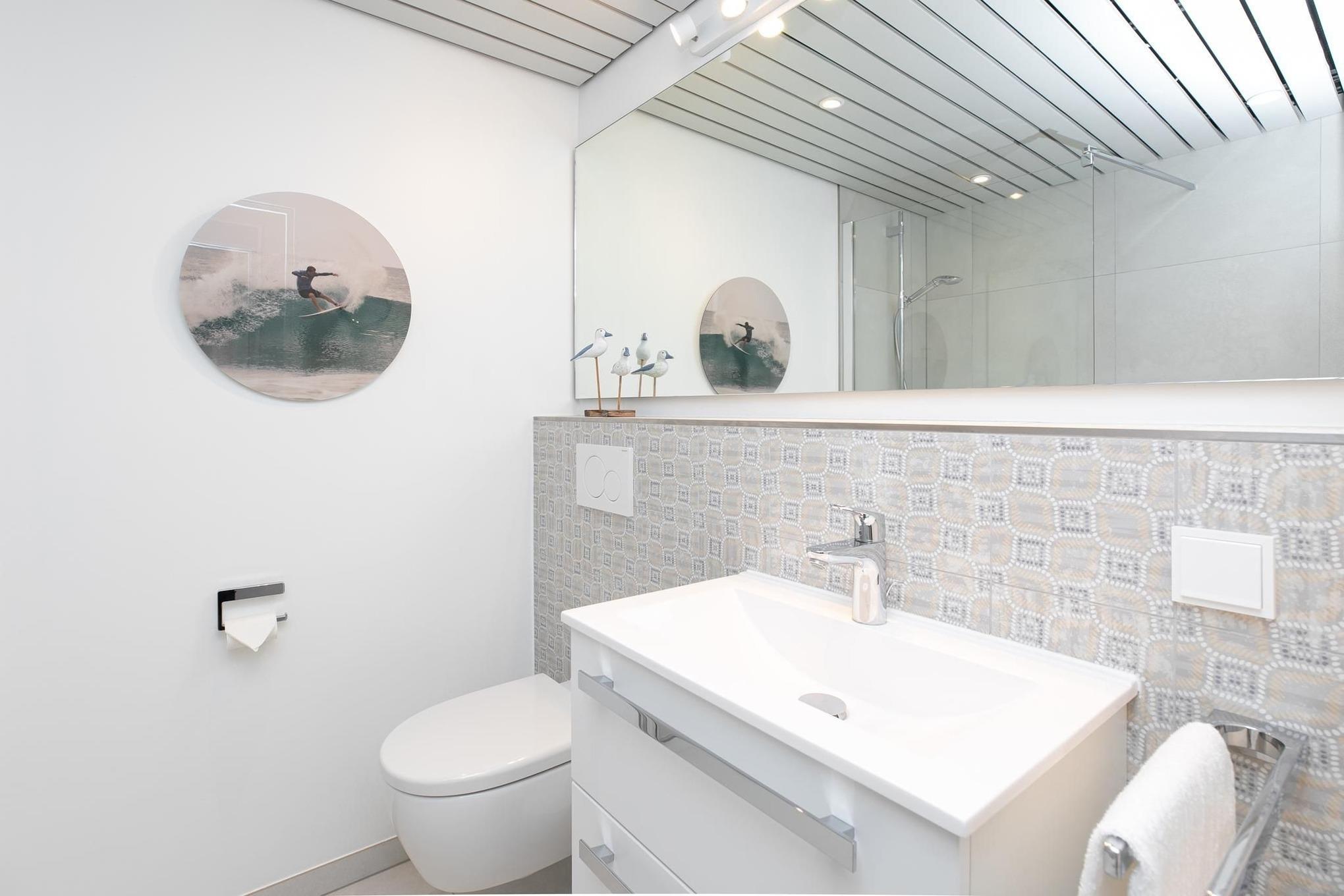 Es erwarten Sie ein kombinierter Wohn- und Schlafraum mit einem komfortablen Ecksofa, einem Flachbildfernseher, einem Boxspring-Doppelbett (180x200 cm) sowie eine voll ausgestattete Küche. Das separate Schlafzimmer verfügt über ein französisches Doppelbett (140x200 cm) und einen Kleiderschrank. Das moderne Badezimmer ist mit einer Dusche ausgestattet. Verbringen Sie viele Sonnenstunden auf dem überdachten, möblierten Balkon mit Fernblick auf die Ostsee.