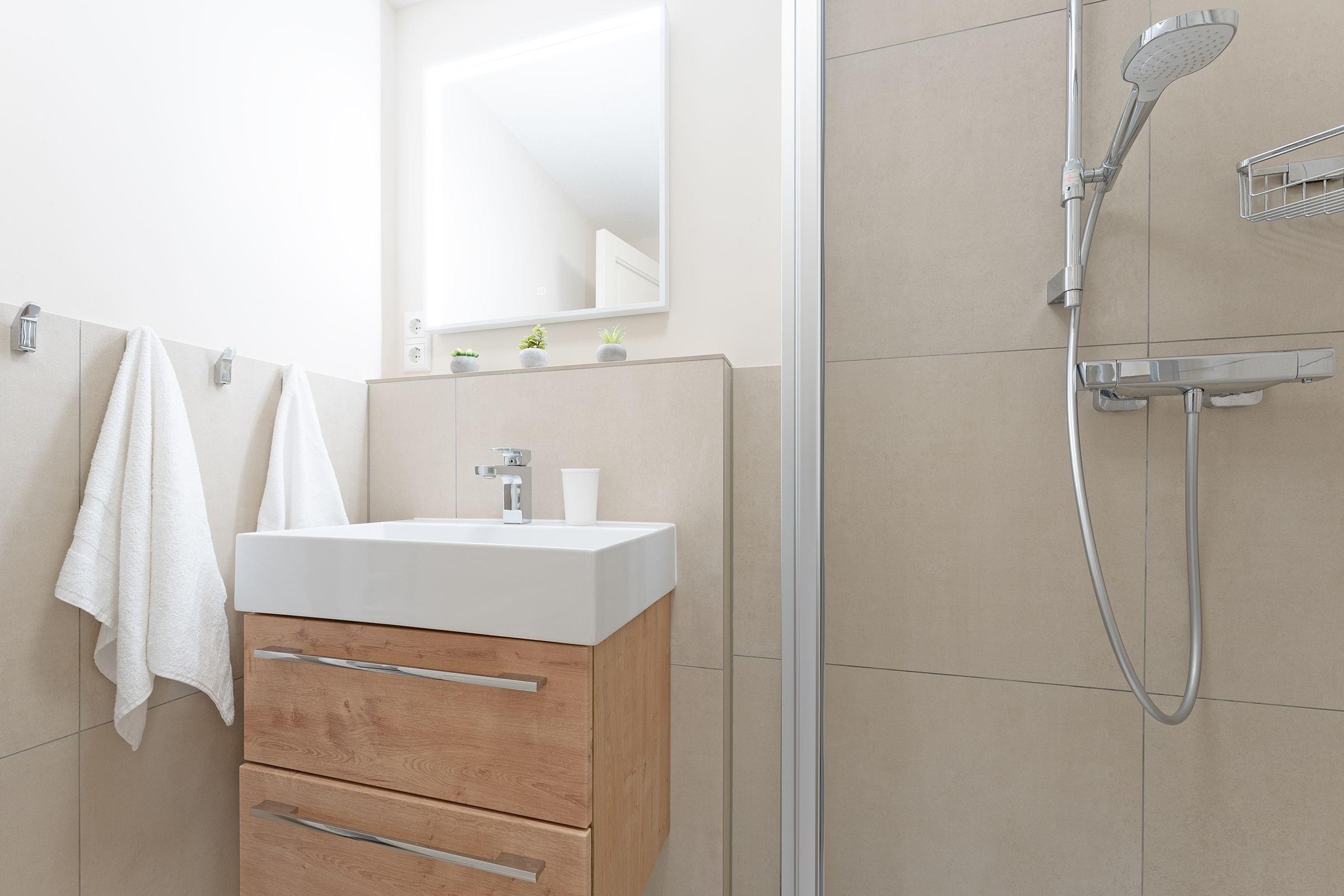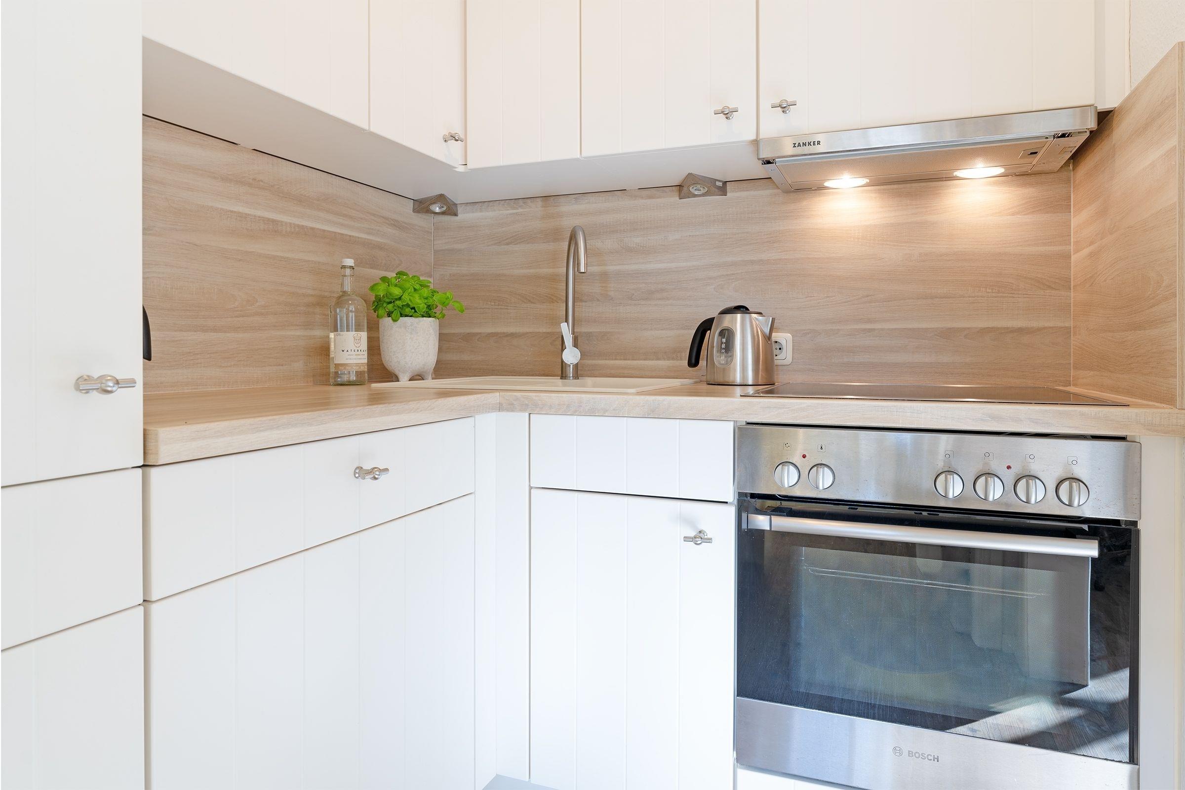 Verweilen Sie im gemütlichen Wohnbereich auf dem Sofa und lesen ein gutes Buch oder lassen sich vom Fernsehprogramm unterhalten. Die separate, gut ausgestattete Küche hält viele Annehmlichkeiten für ein herrliches Urlaubsmenü bereit. Erholsame Nächte können Sie im Schlafzimmer mit Boxspring-Doppelbett (160x200 cm) verbringen. Als weitere Schlafmöglichkeit dient das Schlafsofa (140x200 cm) im Wohnbereich. Das Badezimmer erwartet Sie mit einer Dusche. Verbringen Sie erholsame Stunden auf der möblierten Terrasse am Haus und genießen Sie die Ruhe.