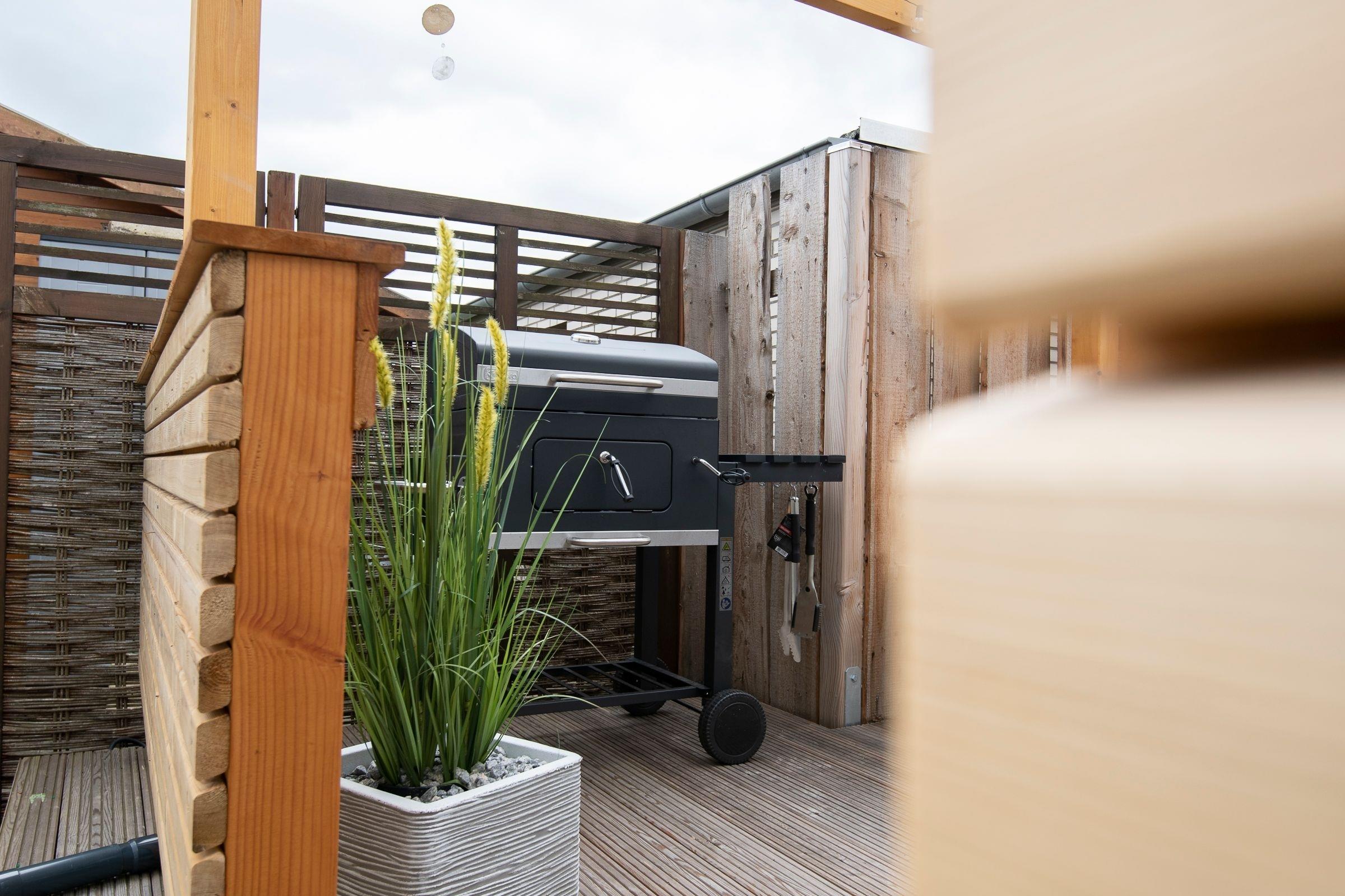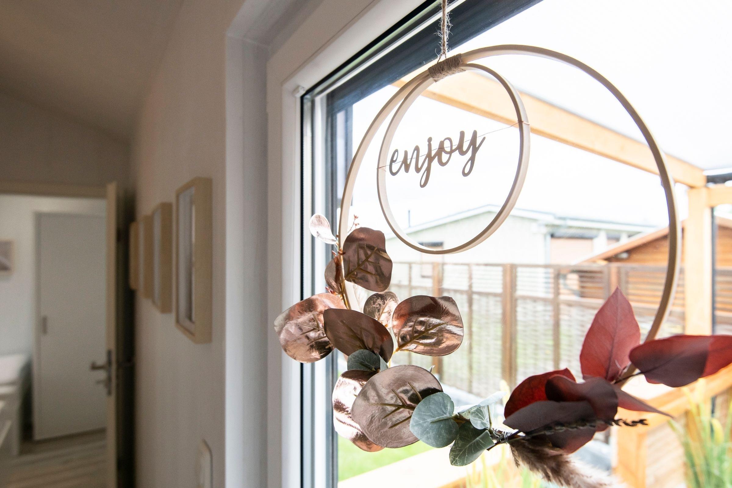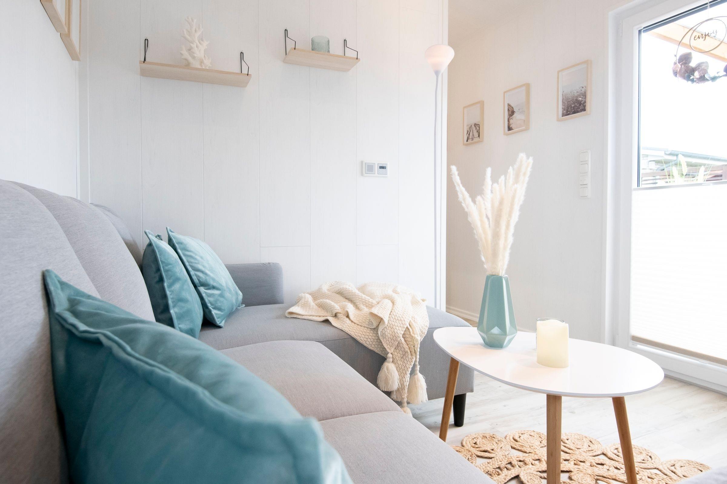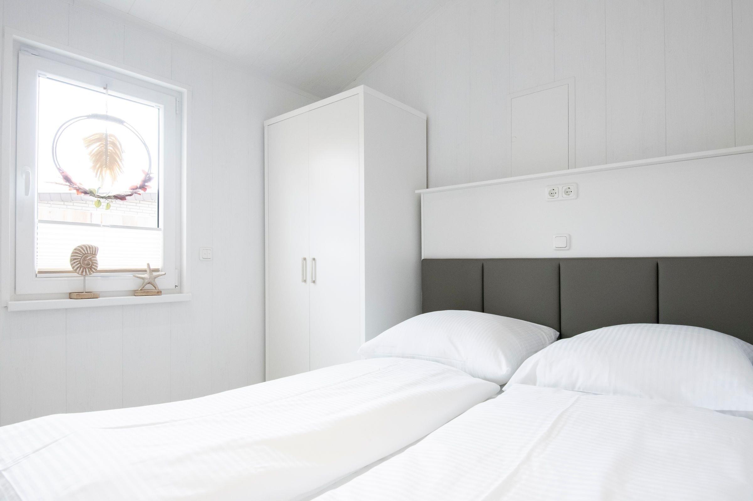Unterteilt ist das Feriendomizil in ein Wohnzimmer mit Schlafsofa (Liegefläche 140x200 cm) und TV, eine offene, gut ausgestattete Küche, 2 Schlafzimmer, sowie ein tageslichthelles Badezimmer mit bodentiefer Dusche, Fön und Handtuchheizung. Das erste Schlafzimmer ist mit komfortablem Boxspringbett (160x200 cm), Kleiderschrank, und TV ausgestattet. Bei Bedarf ist auch Platz um ein Kinderreisebett aufzustellen. Das zweite Schlafzimmer umfasst 2 Einzelbetten (je 80 x 190 cm) und einen Kleiderschrank. Plissees und Außenrollos sorgen in allen Schlafräumen, sowie im Wohnzimmer für angenehme Verdunklung. Der eingezäunte Garten bietet mit möblierter Terrasse viel Raum zum Entspannen. Auch ein Grill ist vorhanden, genießen Sie gesellige Barbecue Abende oder entspannen bei einem stilvollen Sundowner und lauschen den Ostseewellen.
