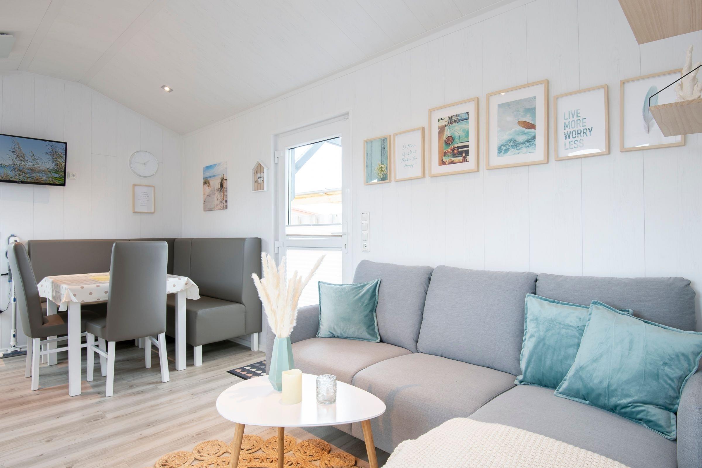 Das gemütliche Modulhaus "Strandmuschel" bietet auf einer Wohnfläche von ca. 37 m² ausreichend Platz und Komfort für bis zu 4 Personen.