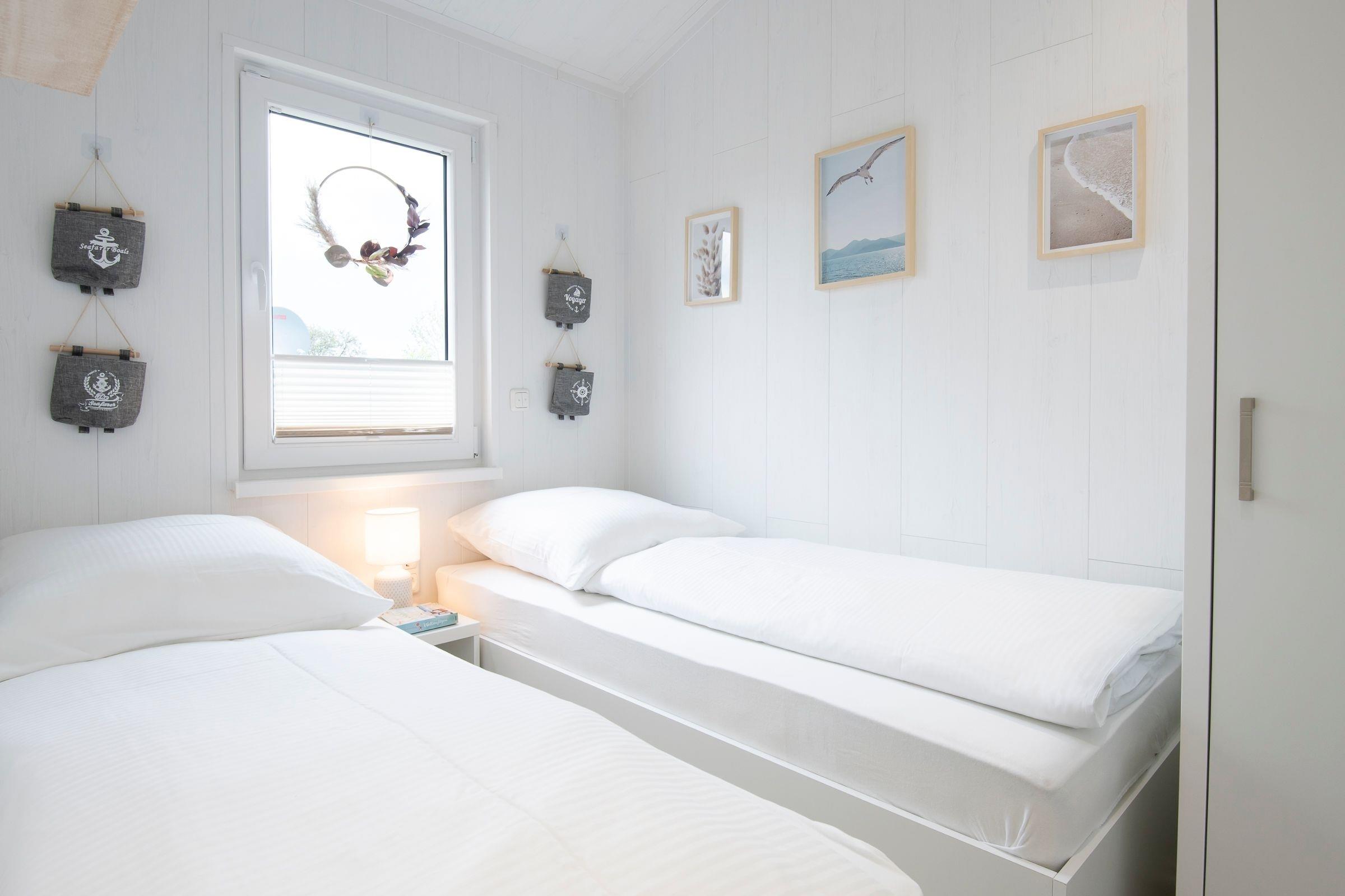 Schlafzimmer 2: 2 Einzelbetten (je 80x190 cm), Kleiderschrank, Plissee und Außenrollos