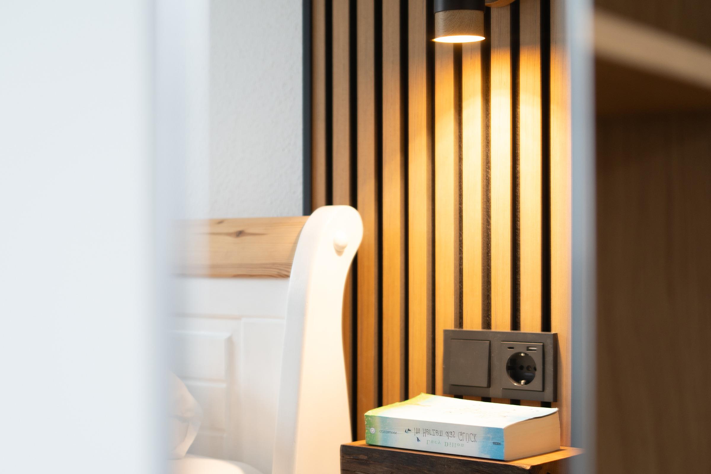 Das separate Schlafzimmer ist mit gemütlichen Doppelbett samt Topper (180x200 cm), Kleiderschrank und zweitem Flatscreen-TV ausgestattet. Das moderne Badezimmer ist elegant mit Eckdusche, WC und Waschtisch mit beleuchtetem Spiegel möbliert. Das gesamte Interieur ist modern, lässig und mit sicherem Gespür für Behaglichkeit und Stil aufeinander abgestimmt. Fußbodenheizung sorgt im Wohnzimmer, Schlafzimmer und im Bad für wohliges Raumklima, Außenjalousien ermögliche angenehme Verdunklung.