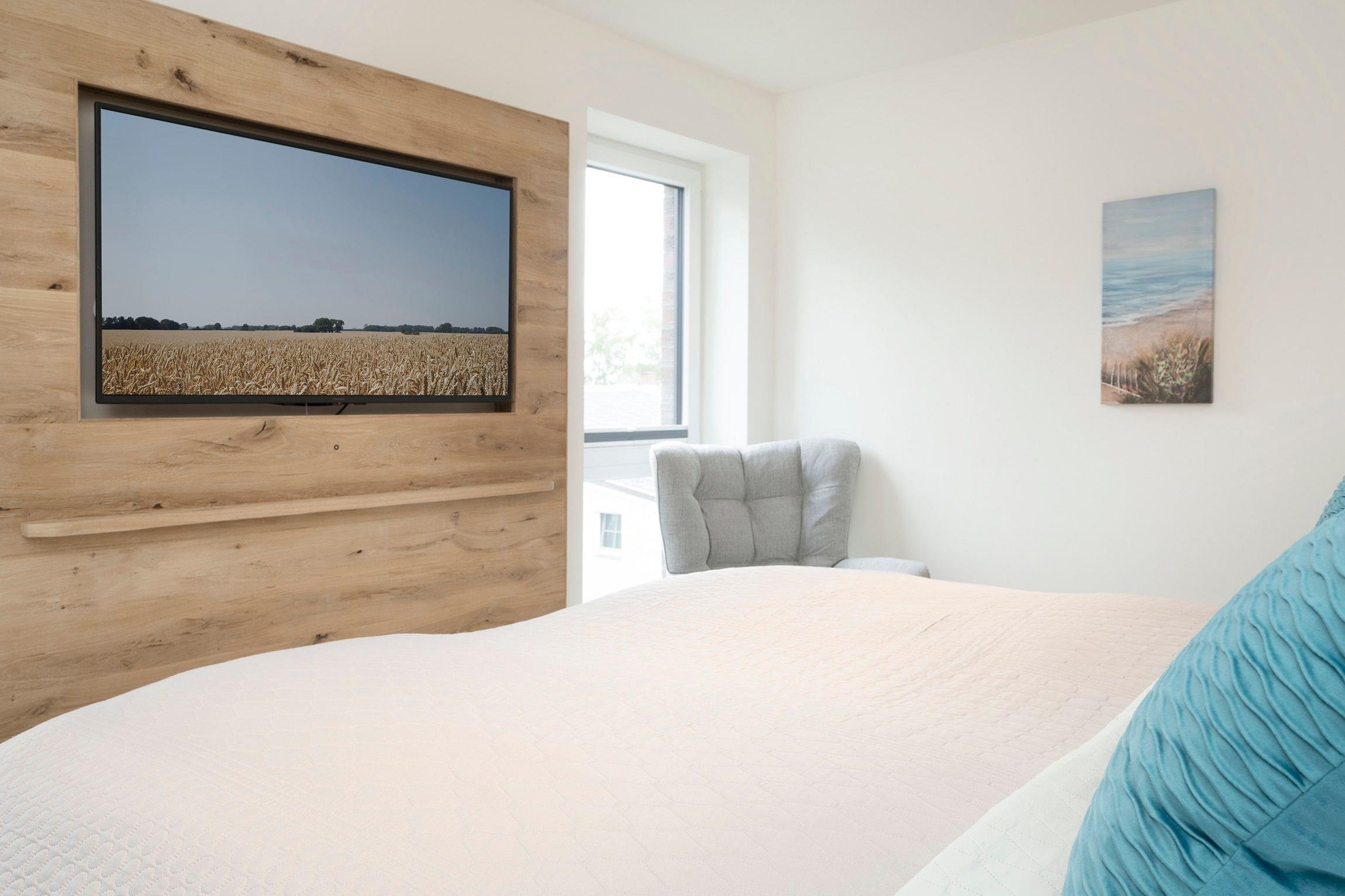 Mit dem Aufzug erreichen Sie bequem Ihr Feriendomizil im 2. Stock. Hier werden Sie von lichtdurchfluteten Räumen und einer hochwertigen Ausstattung empfangen. Vom Wohn/Essbereich mit angrenzender, voll ausgestatteter Küche, gelangen Sie auf den möblierten Balkon. Genießen Sie die frische, klare Luft und lassen Sie Ihren Blick zwischen den Häusern auf die Ostsee streifen. Die zwei separaten Schlafzimmer sind jeweils mit einem Doppelbett (je 2x 90x200cm) und einem TV ausgestattet, so dass Sie ausgeruht im hellen Tageslicht-Bad in den neuen Tag starten können. Als besonderes Highlight verspricht die hauseigene Sauna entspannte Stunden nach langen Strand-Spaziergängen. Eine Fußbodenheizung sorgt für wohlige Wärme in der gesamten Ferienwohnung.
