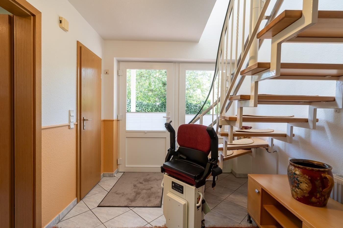 Das kleine Ferienhaus liegt in einer Sackgasse in ruhiger Lage. Im Untergeschoß befindet sich das Wohnzimmer( Schlafsofa für 1 Person ) die Küche und ein Gäst-WC. All diese Zimmer gehen von einem großen Flur ab vom dem auch ein Treppenlift ins OG führt. Im Obergeschoß finden Sie das Schlafzimmer mit Doppelbett, das Kinderzimmer mit Schlafsofa und das großzügige Bad mit Dusche und Badewanne. Zum Haus gehört eine Terrasse und eine große Rasenfläche
