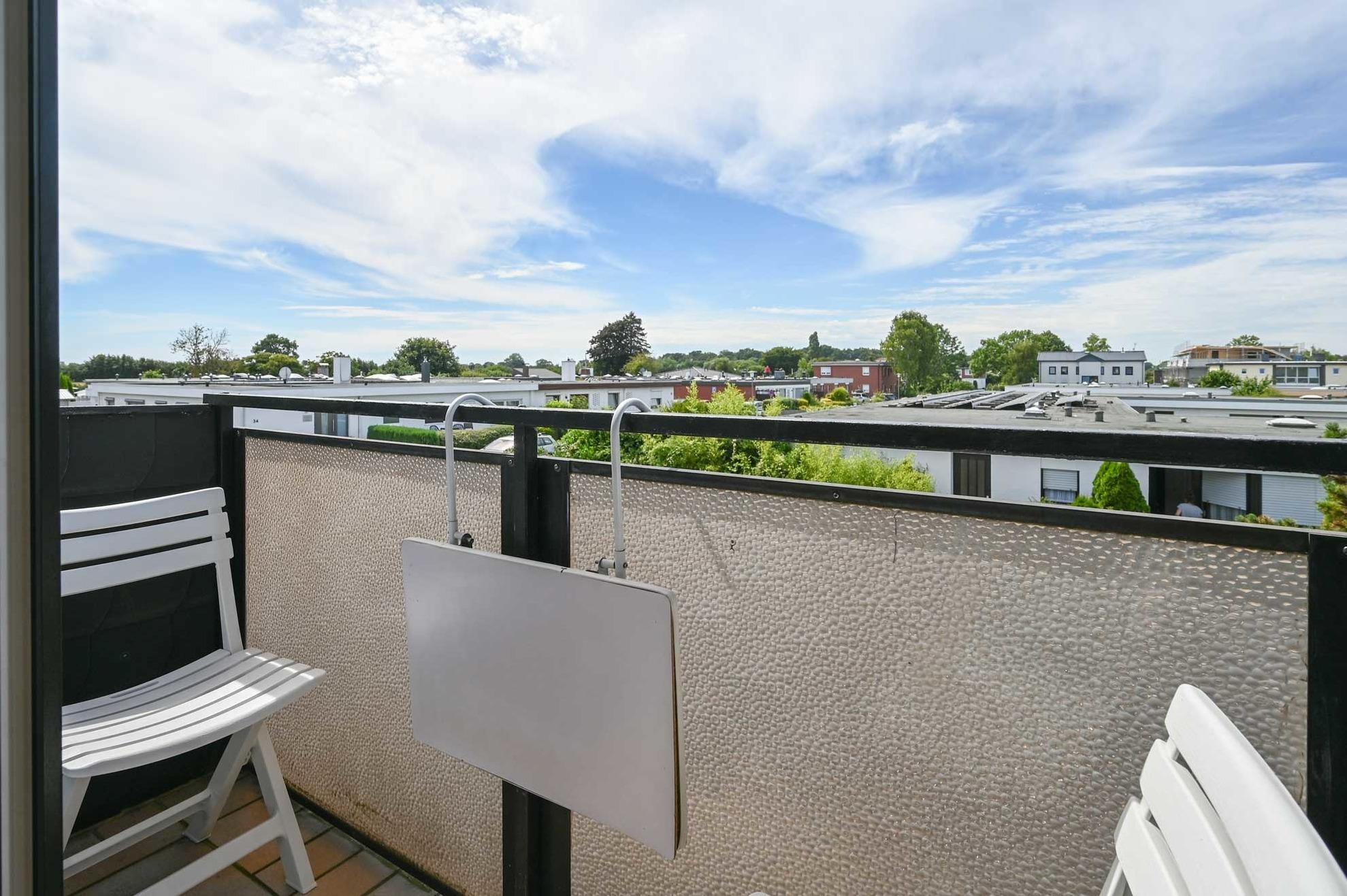 Klein, aber fein ist der französische Balkon: Er ist der perfekte Ort, um bei einem „Sundowner“ den zauberhaften Sonnenuntergang zu bewundern. Die integrierte, praktische Küchenzeile bietet Ihnen alles, was Sie für ein gemütliches Frühstück oder kleine kulinarische Momente benötigen.