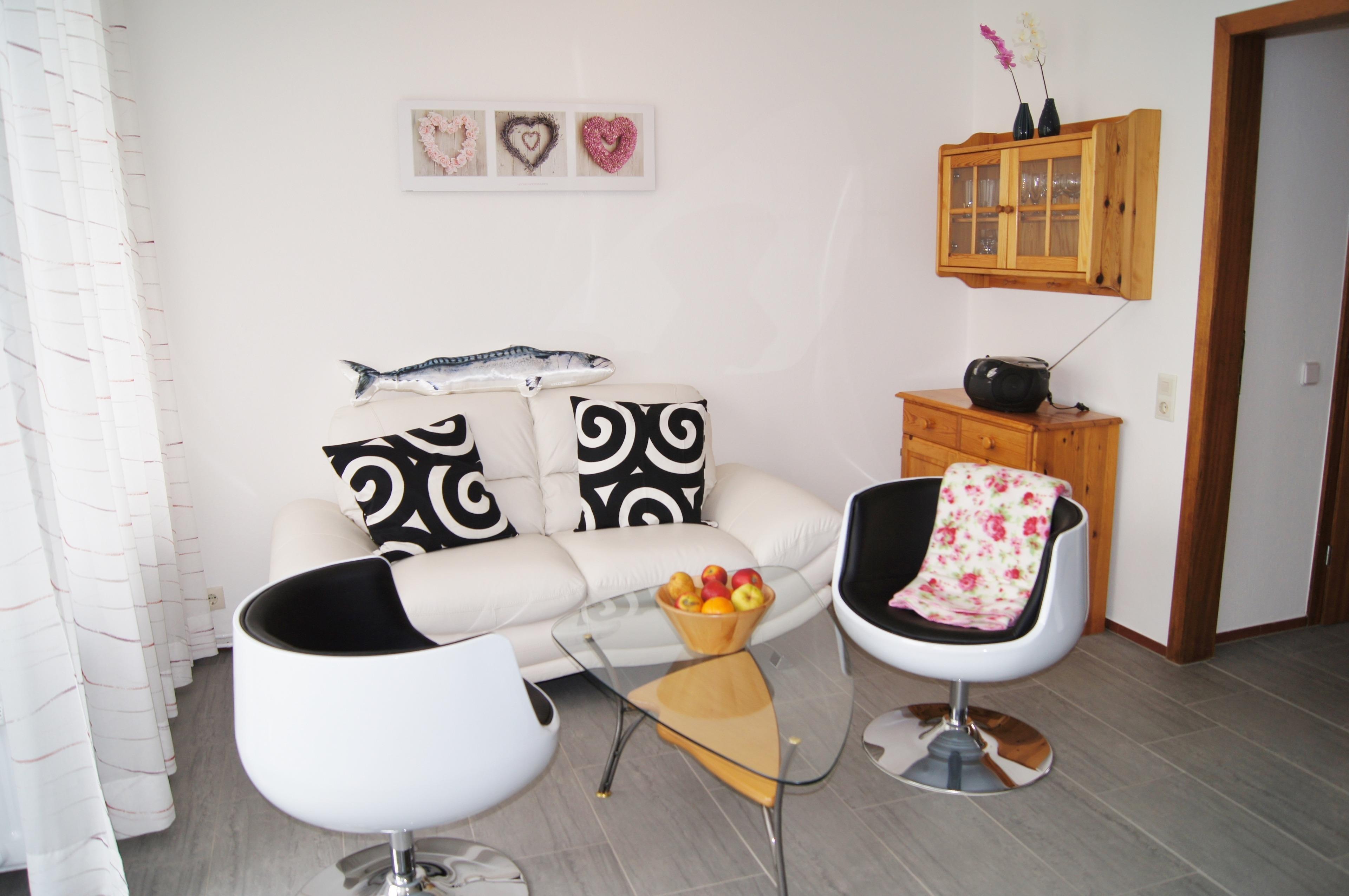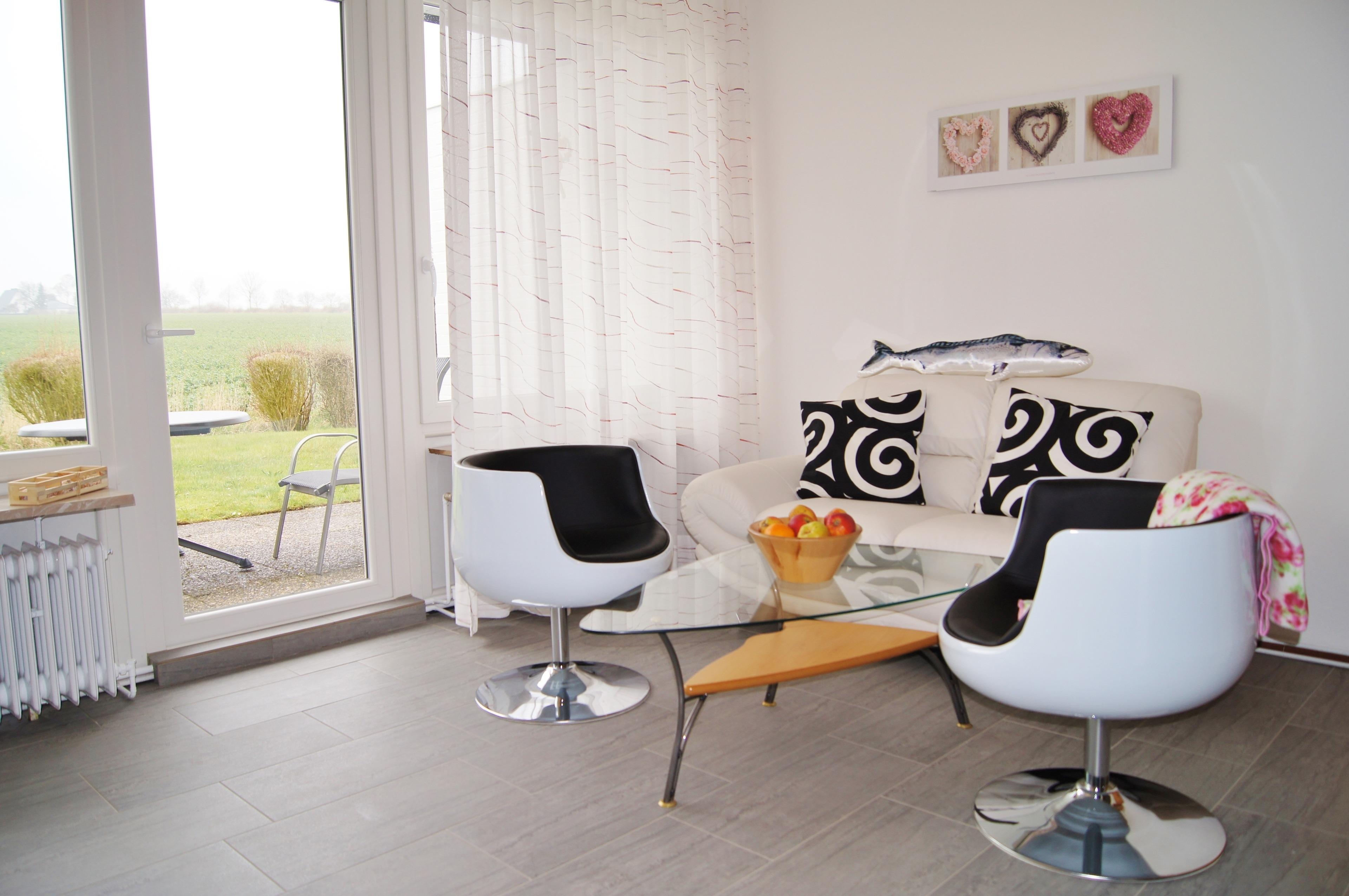 Die Wohnung besteht aus einem Wohn- Essbereich mit Zugang zur gemütlich möblierten Terrasse, Küche mit Herd und Geschirrspüler, Kinderzimmer mit 2 Einzelbetten, Duschbad, separatem WC, und vom Wohnbereich separiertem optisch abgetrenntem Schlafbereich. Aus dem Wohnzimmer und von der Terrassegenießen Sie den Weitblick über Felder. Zugleich ist die Ortsmitte und der Strand fußläufig in wenigen Minuten erreichbar.