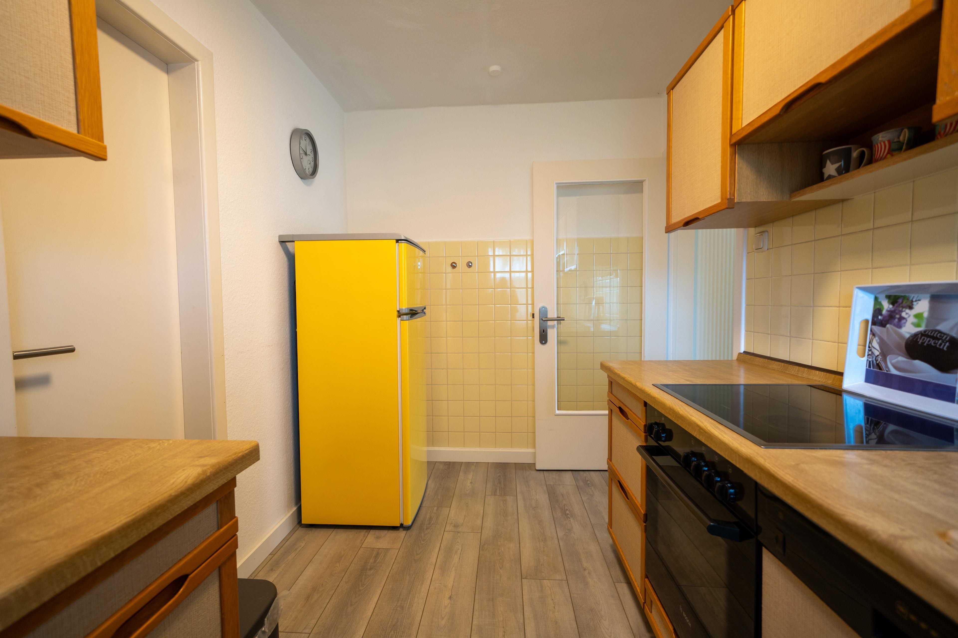 Im Wohnbereich können Sie auf der Couch entspannen. Die Einrichtung ist zweckmäßig und es gibt eine Sitzecke für bis zu 4 Personen.