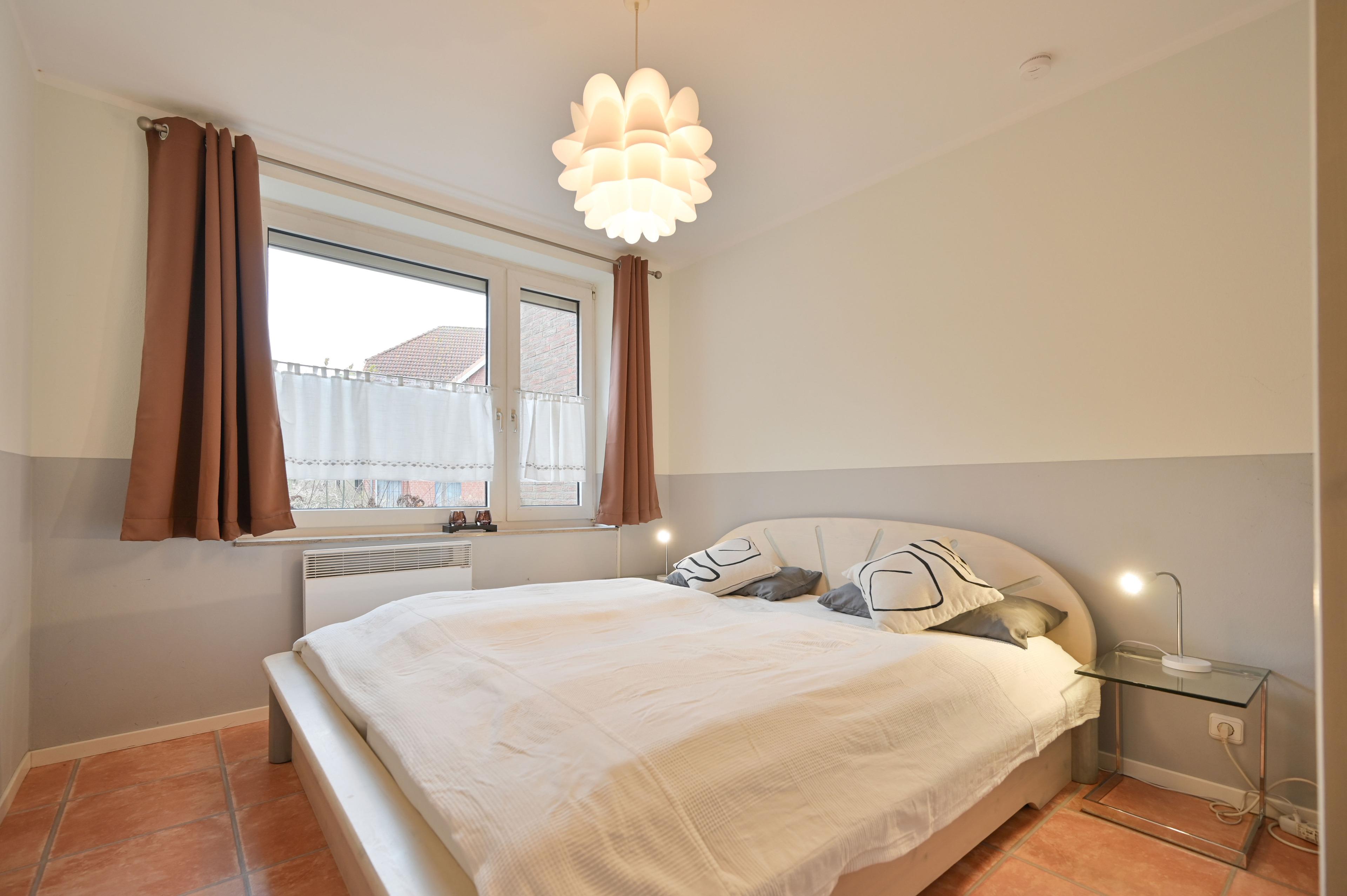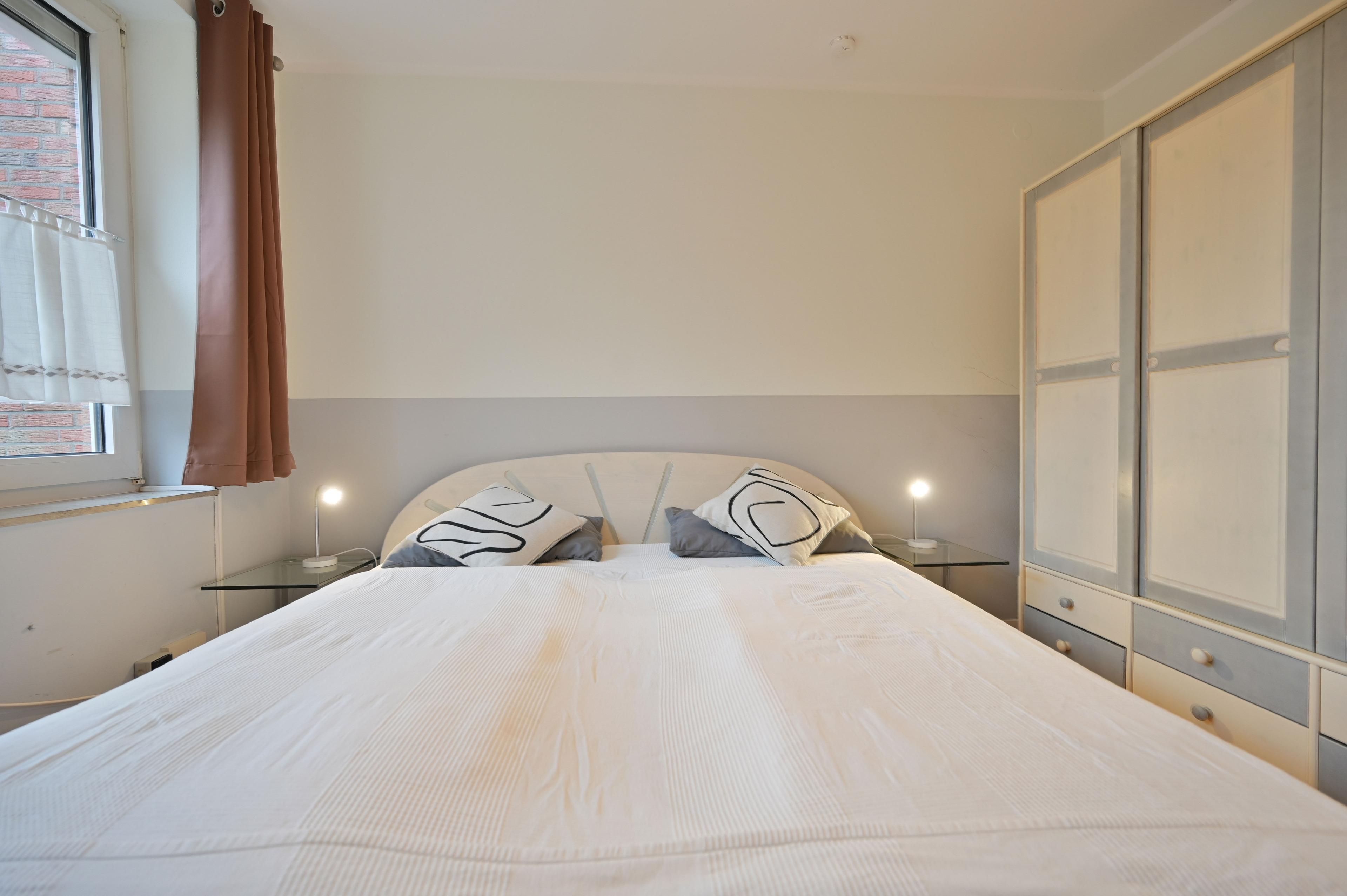 Im Schlafzimmer erwartet Sie ein komfortables Doppelbett sowie ein großer Kleiderschrank mit viel Stauraum.