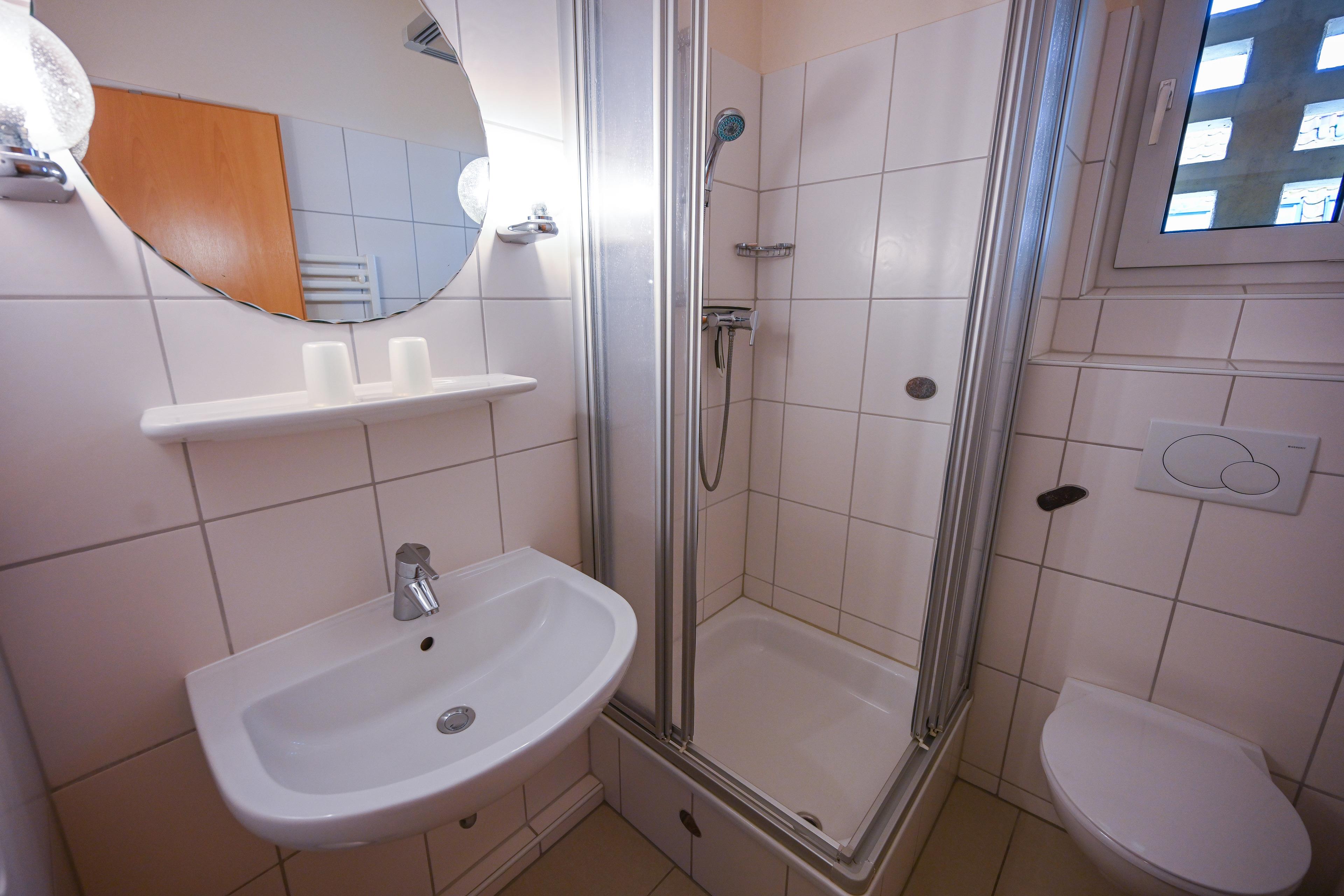 Die 1-Raum-Ferienwohnungen Nr. 11 bietet 2 Personen ausreichend Platz. Sie ist mit einem Wohnschlafraum mit Doppelschrankbett, Einbaukochzeile, Dusche/WC und Flur ausgestattet, und hat einen Balkon mit seitlichem Seeblick. Sie befinden sich im 2. Stock.
