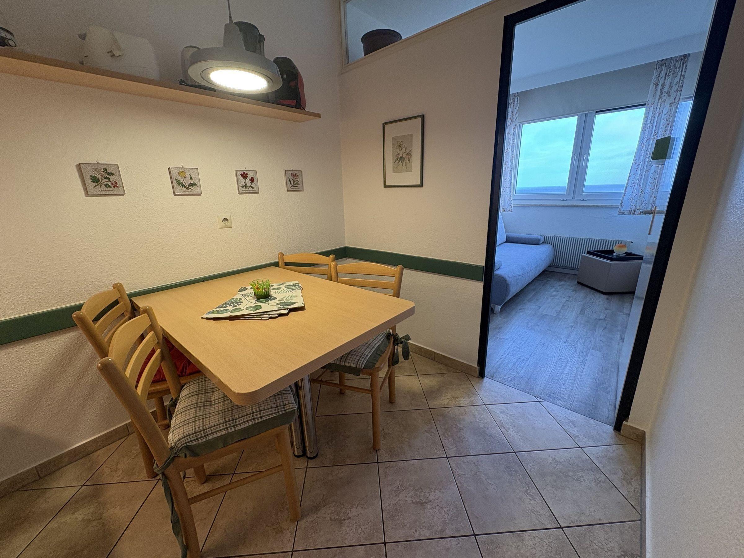 Der Außenbereich des Apartments im 5. Stock des Hauses Berolina bietet einen traumhaften Blick über die Ostsee bis zum Horizont. Gäste können den möblierten Balkon nutzen, um die frische Seeluft zu genießen. Ein Strandkorb steht kostenlos von April bis September zur Verfügung, ideal für entspannte Tage am Strand. Zudem haben die Gäste Zugang zu drei Dachterrassen mit herrlichem Weitblick. Das hauseigene Schwimmbad (15 m x 8 m) sowie ein separates Kleinkindbecken sind exklusiv für Gäste und Eigentümer. Für sportliche Aktivitäten stehen Tischtennis und verschiedene Sportmöglichkeiten im Deichvorland bereit. Fahrräder können in den Kellerräumen abgestellt werden, und ein PKW-Stellplatz in der Tiefgarage ist ebenfalls vorhanden. Hunde sind herzlich willkommen, während das Rauchen lediglich auf dem Balkon gestattet ist.