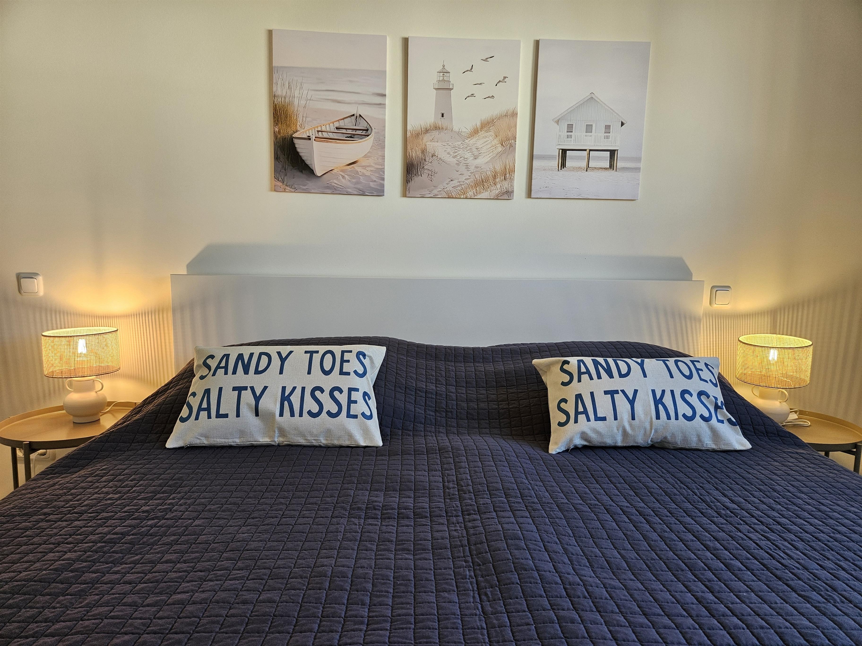 - Ruhiges Schlafzimmer mit bequemen Doppelbett (1,80 x 2,00m) garantiert tiefe Entspannung nach einem Tag am Meer.