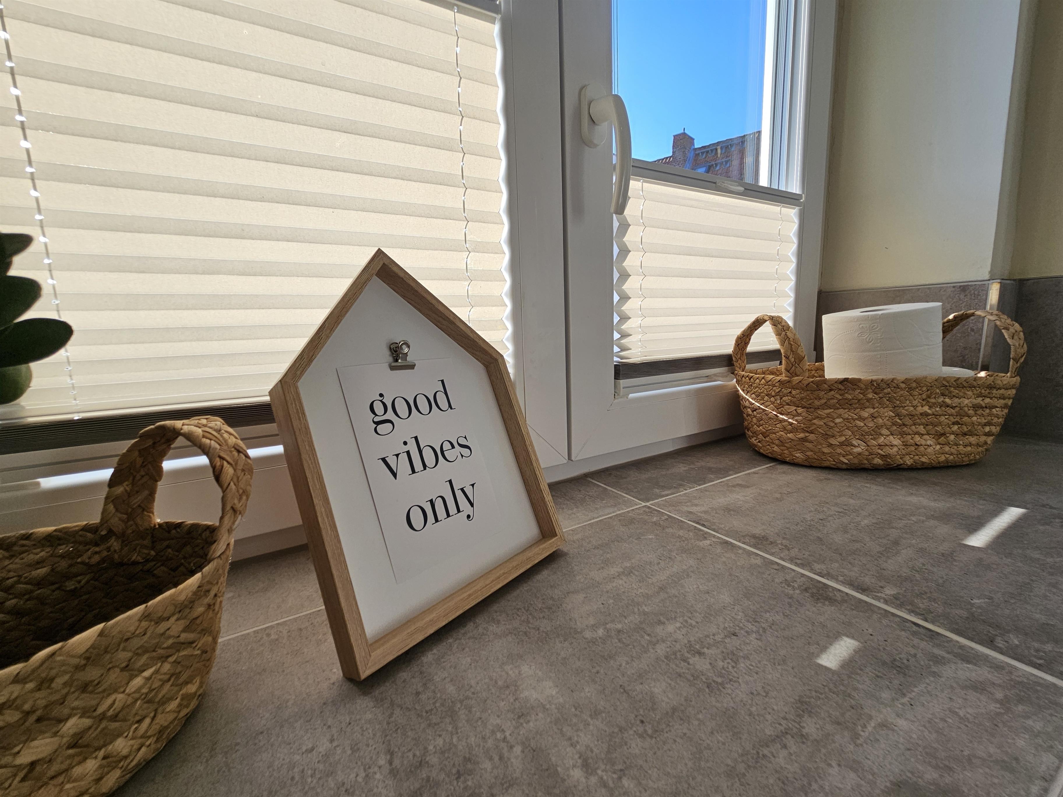 Im Schlafzimmer befindet sich ein 1,80 x 2,00 m breites Doppelbett und ein Kleiderschrank. Das Duschbad ist neu und ebenerdig und bietet liebevolle Details.