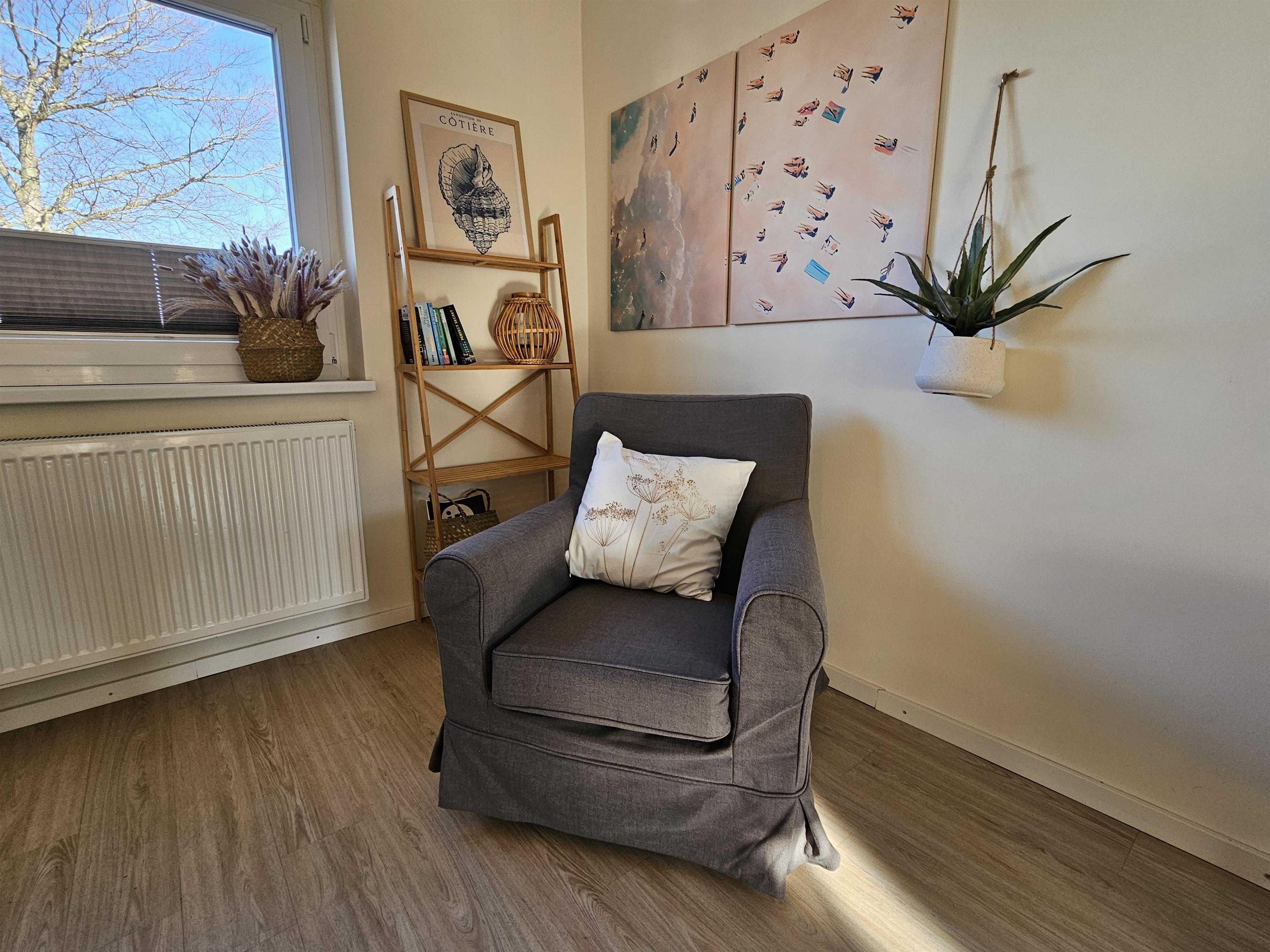 - Gemütliches Wohnzimmer mit Sessel und Schlafcouch (1,40 x 2,00m) lädt für eine schöne Lesezeit oder Fernsehabende ein.