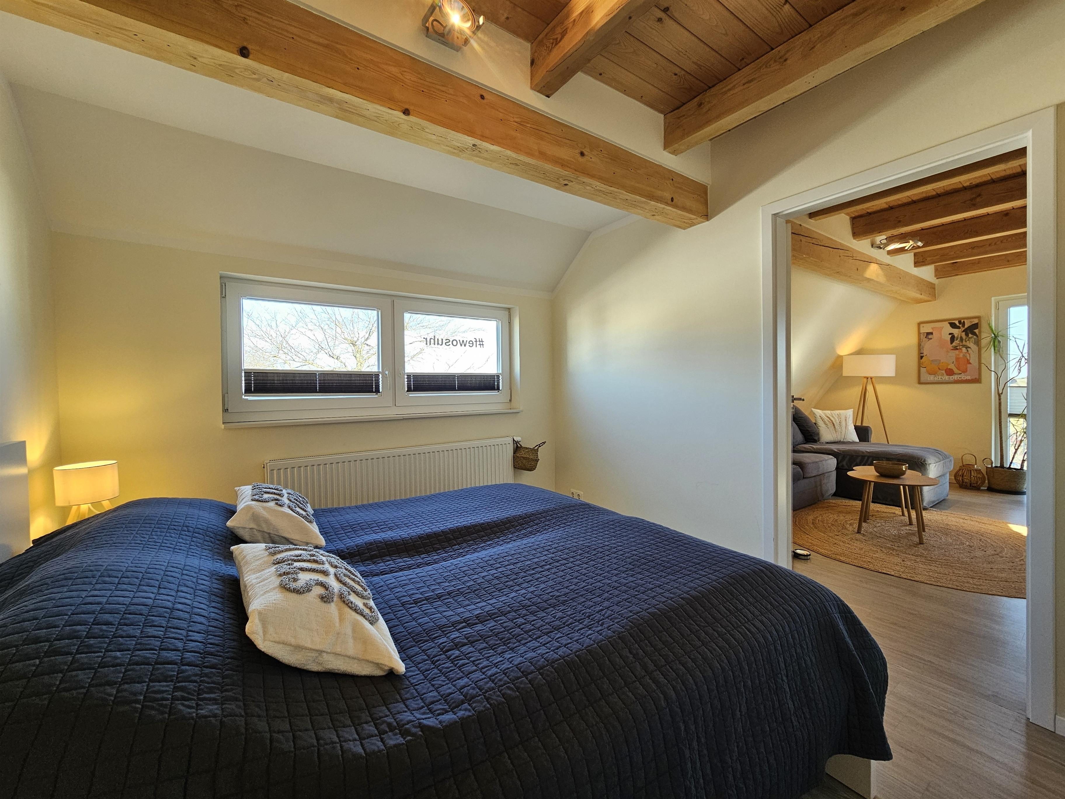 - Highlight im Dachgeschoss: Das zweite Schlafzimmer bietet nicht nur zwei flexible Einzelbetten (je 0,9 x 2,00m), sondern auch einen traumhaften Meerblick.