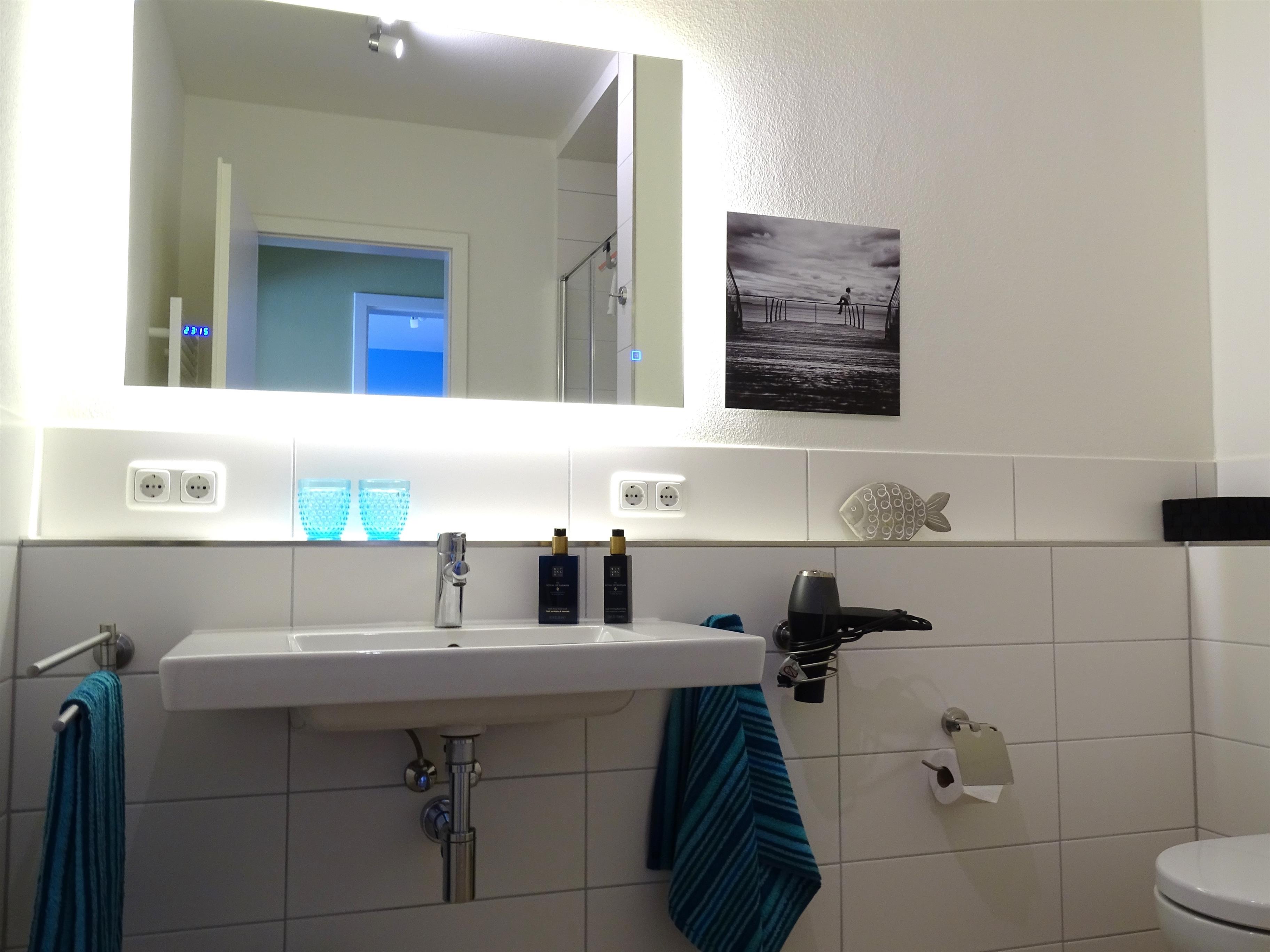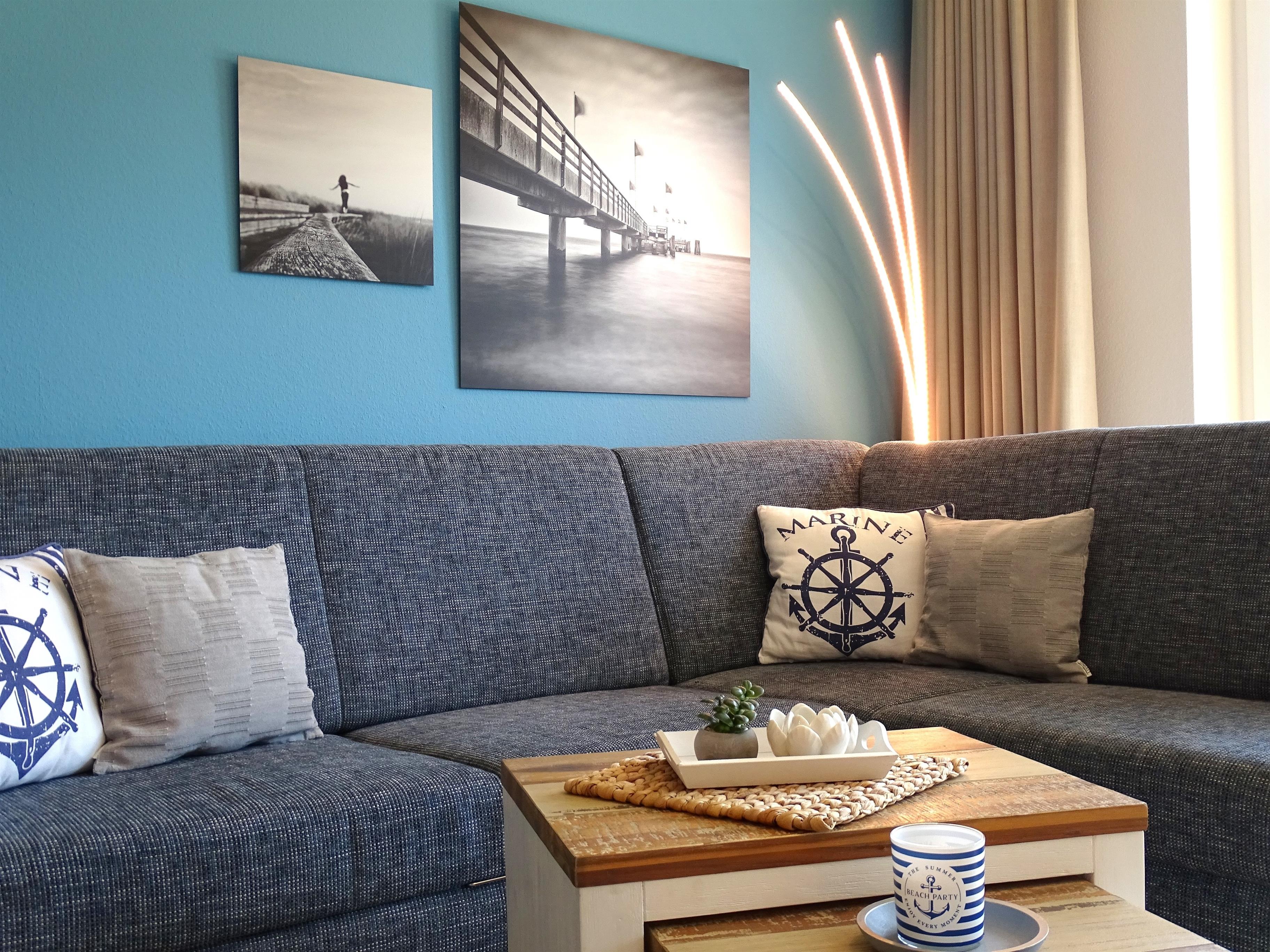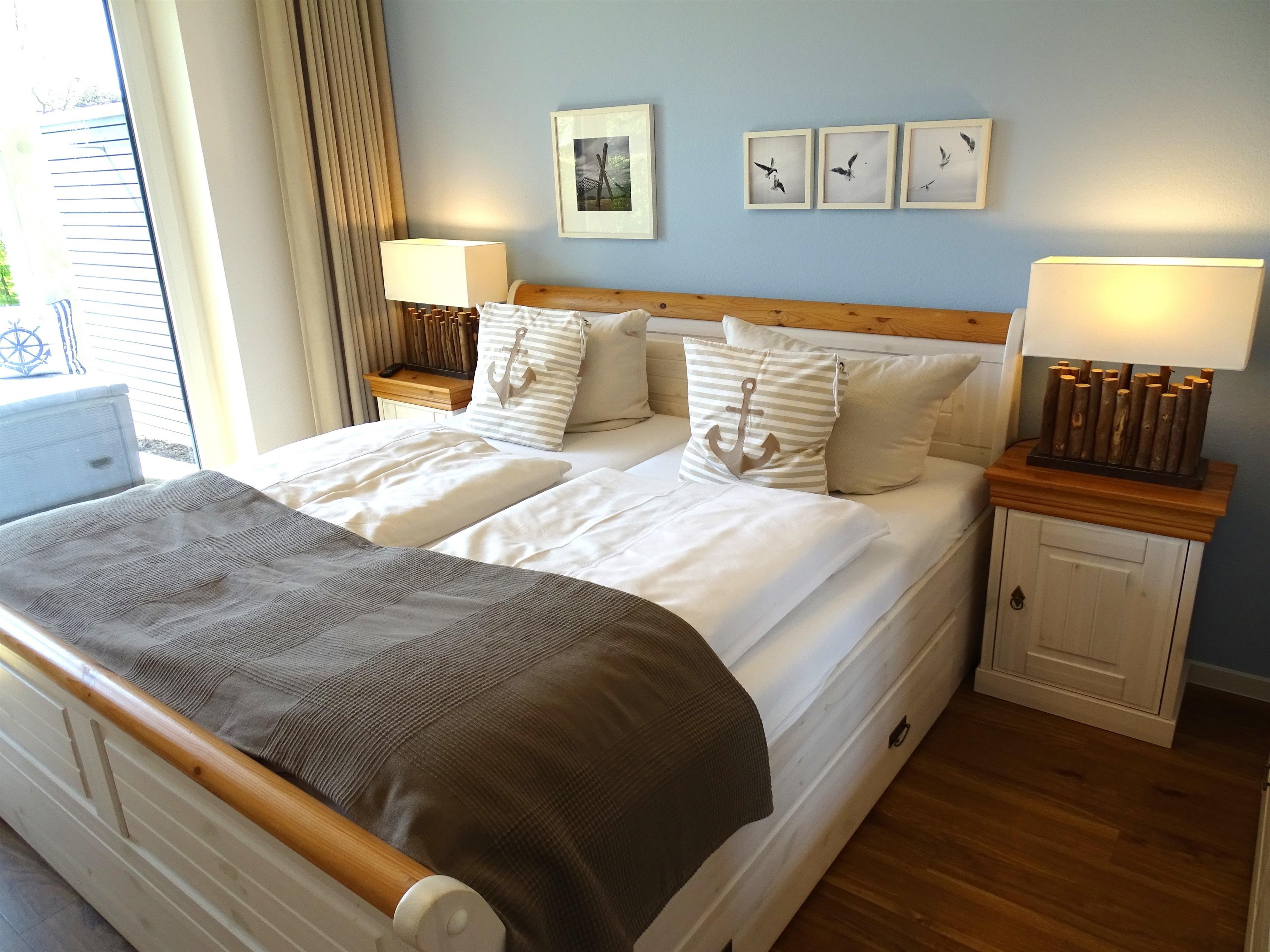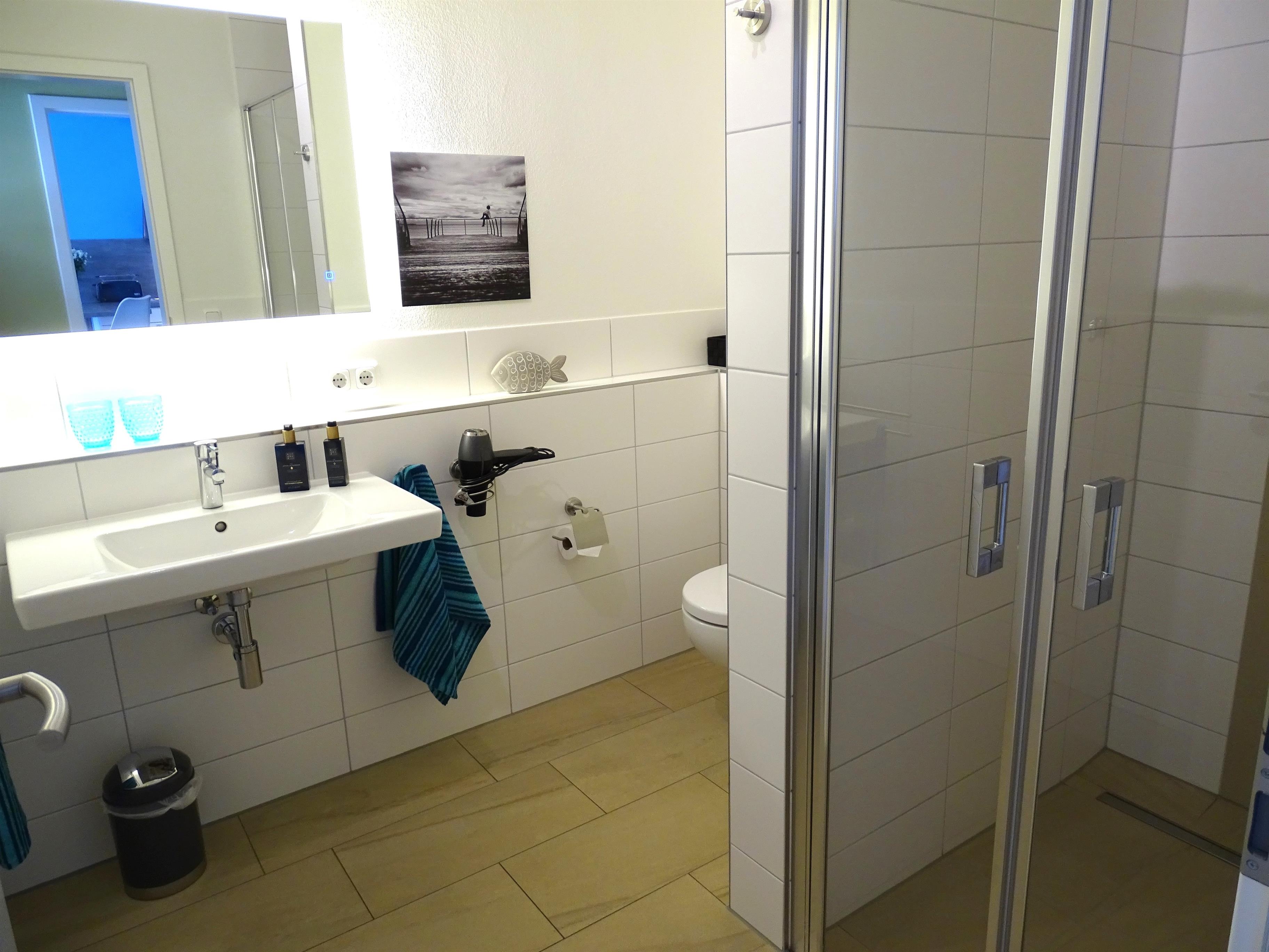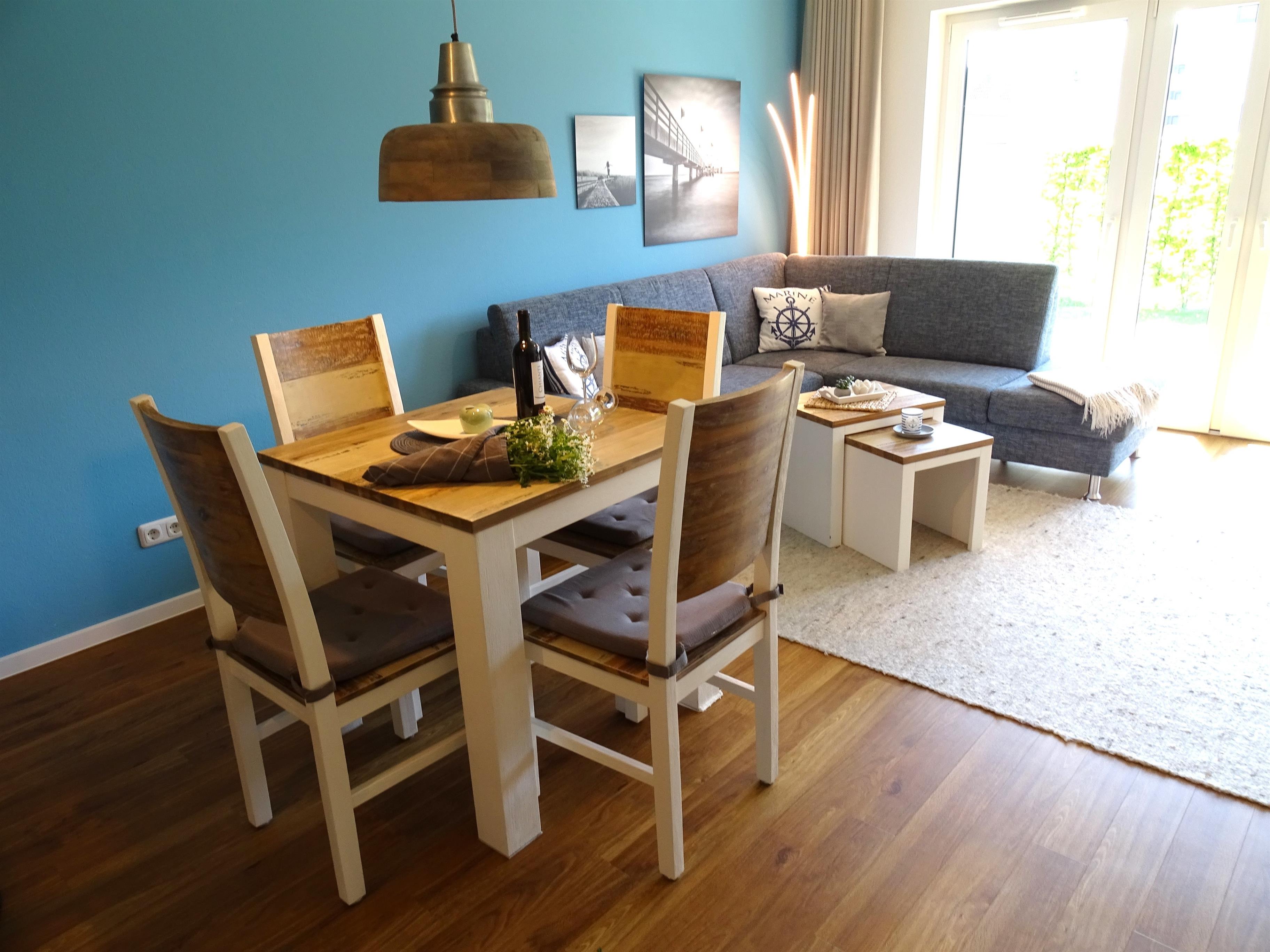 Genießen Sie Ihren Urlaubsaufenthalt in dieser modernen und hochwertig ausgestatteten Ferienwohnung in unmittelbarer Strandnähe, hier werden Sie sich wohlfühlen...Aufgeteilt ist Ihr Ferienobjekt in Eingangsbereich mit Garderobe, Abstellraum für Ihre Strandutensilien und Koffer, ein modernes Badezimmer mit bodengleicher großer Dusche, einem WC und Waschmaschine. Für einen geruhsamen Schlaf, befindet sich 1 separates Schlafzimmer mit Doppelbett und eine komfortable Couchgarnitur mit Schlaffunktion in Ihrem Ferienobjekt. Sämtliche Fenster sind mit elektronischen Rollos ausgestattet. Ein offener Wohnbereich mit Couchgarnitur, ein Esstisch mit Bestuhlung und eine moderne voll ausgestattete Küchenzeile runden den Wohnbereich ab. An den Wohnbereich angrenzend befindet sich eine zur Wohnung zugehörige möblierte Terrasse mit Terrassenheizstrahler. Hier dürfen Sie Ihren Urlaub komfortabel und strandnah genießen.Informationen zum Heizstrahler und zum Waschtrockner: Für die Terrassenheizstrahler- und Waschtrocknernutzung erheben wir eine Nutzungsgebühr in Höhe des verbrauchten Stromes. Nach Beendigung Ihres Urlaubsaufenthaltes wird dieser direkt abgerechnet. Ein Kfz - Stellplatz befindet sich direkt am Haus, zusätzlich kann kostenpflichtig ein 2. Kfz-Stellplatz angemietet werden. Mitgebrachte Fahrräder können sicher in einer Fahrradgarage auf dem Grundstück untergestellt werden.