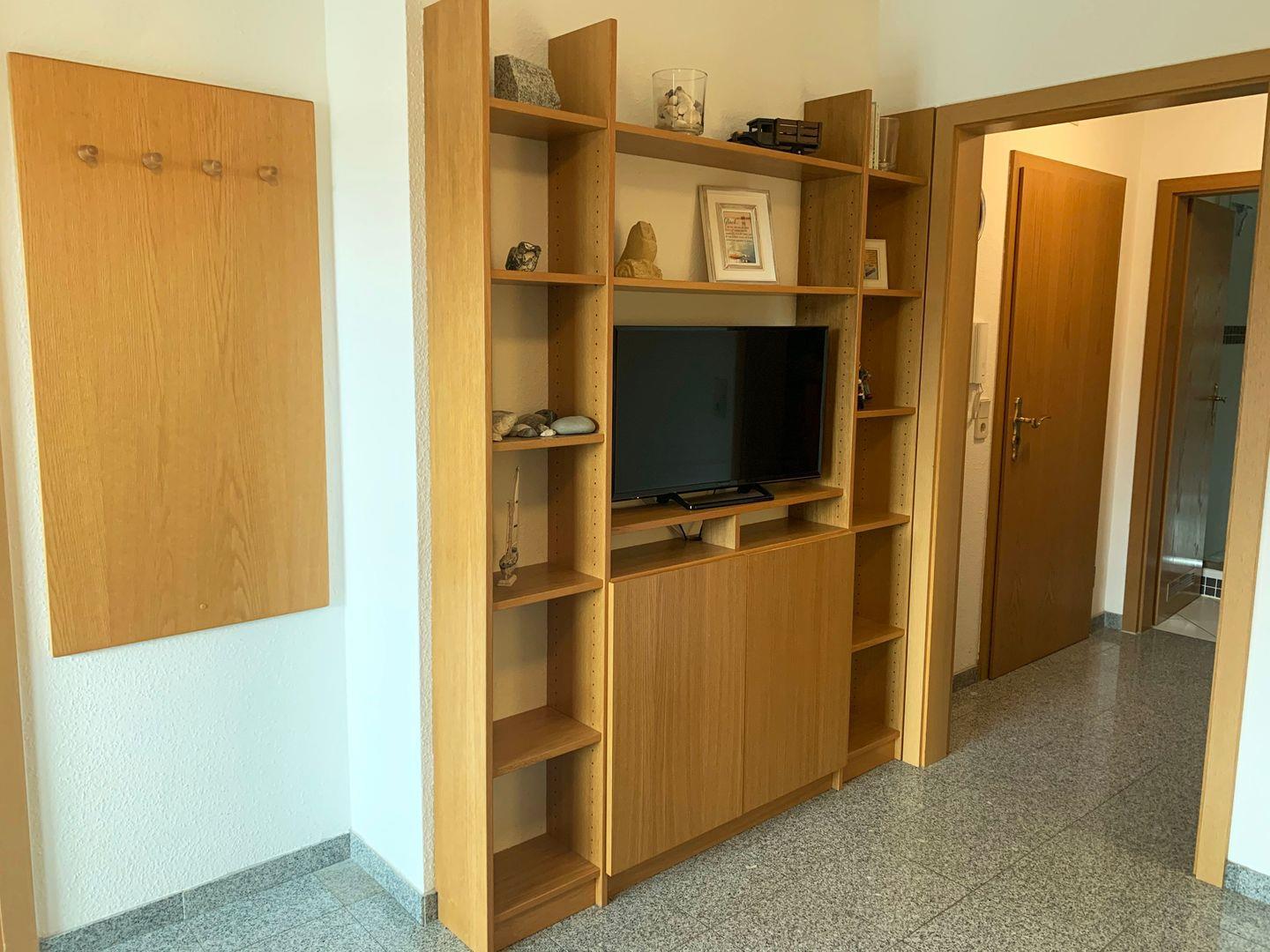 - Wohnbereich mit Schlafsofa. 1 Sessel und 1 Sitzhocker, Wohnwand mit TV