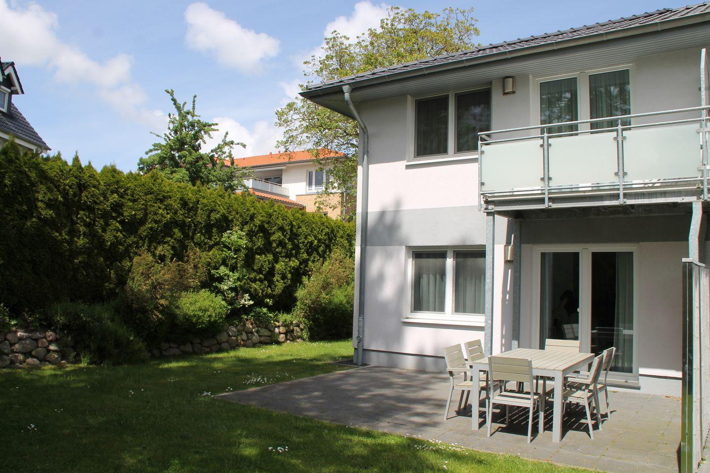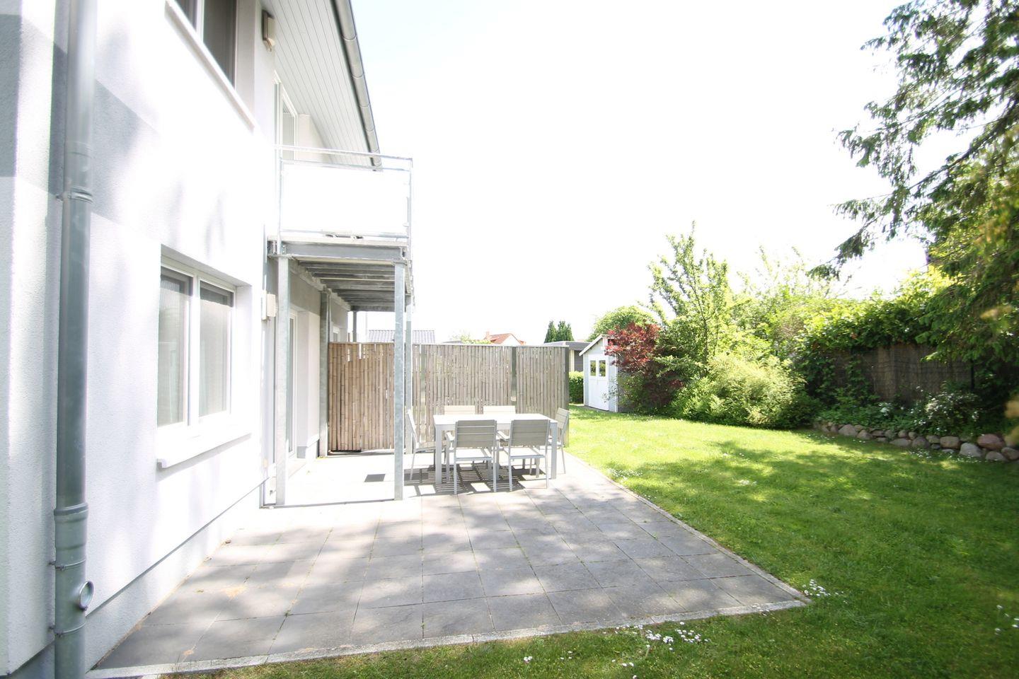 Verbringen Sie gemütliche Stunden auf der großzügigen Terrasse im Garten, die mit bequemen Gartenmöbeln ausgestattet ist. Hier können Sie das milde Ostseewetter genießen, vielleicht beim gemeinsamen Essen oder einfach beim Entspannen. Die umliegende Landschaft lädt zudem zu ausgedehnten Spaziergängen oder einer Partie Tischtennis am Strand ein.