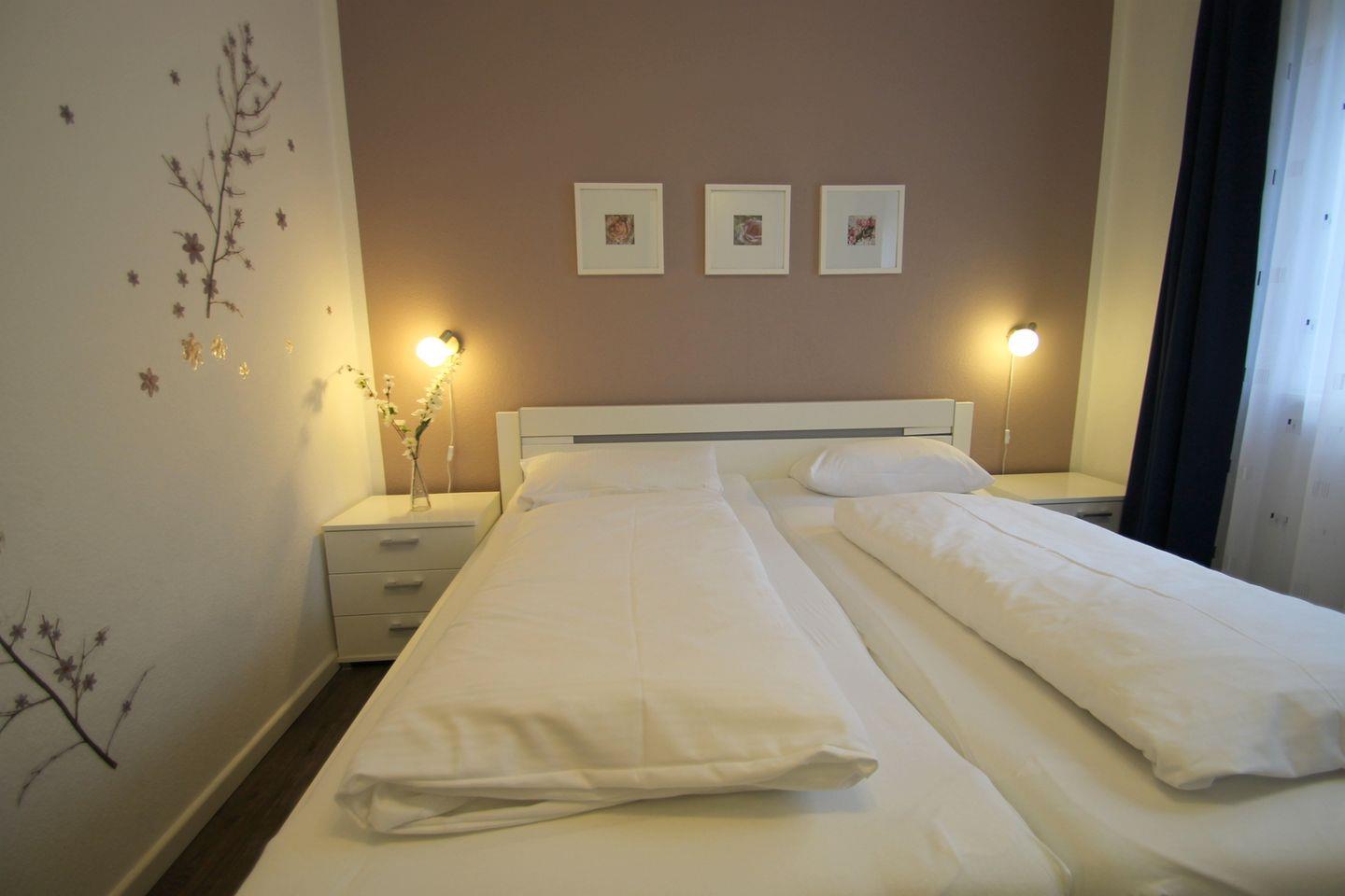Die Wohnung verfügt über zwei gemütliche Schlafzimmer (1 x mit Doppelbett 2 x 90x200 cm und 1 x mit Etagenbett 90x200 cm), die eine entspannte Atmosphäre ausstrahlen und zum Träumen einladen. Eines der Zimmer bietet einen speziellen Bereich nur für Kinder, so dass sich die Kleinen gleich wohl fühlen. Im Wohnzimmer befindet sich eine Schlafcouch (großes Laken erforderlich). Für Reisende mit kleinen Kindern stehen zudem ein Babybett und ein Hochstuhl zur Verfügung.