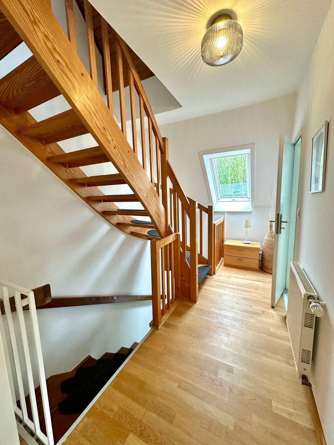 Schönes Endreihenhaus in einer ruhigen Wohnstraße unweit des Hauptstrandes (150 m) mit Südterrasse und großer Dachterrasse.