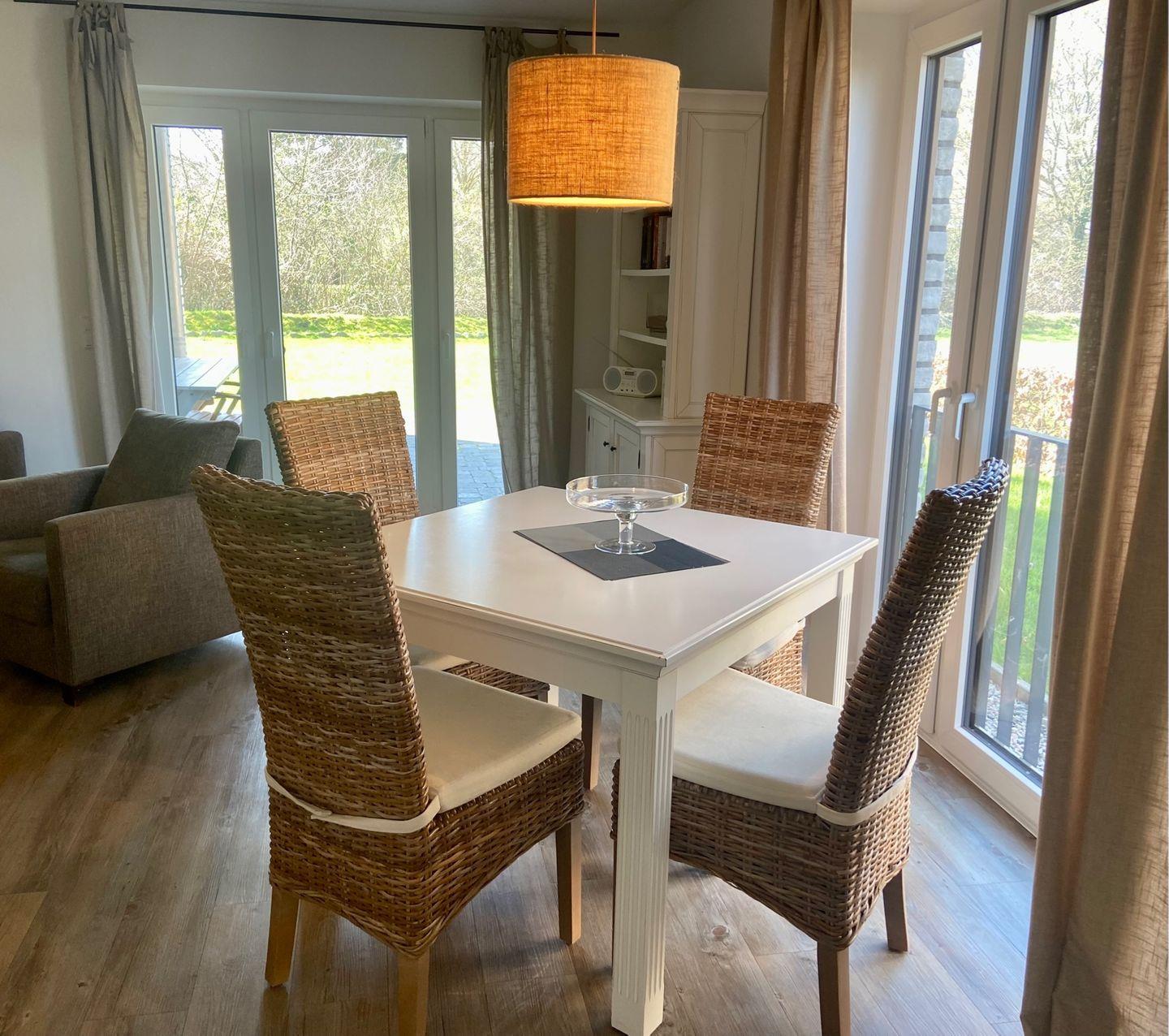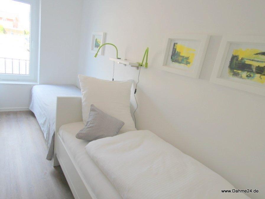 Geschmackvoll eingerichtete, barrierefreie drei Zimmer Ferienwohnung mit herrlicher Westterrasse. Schöner Wohnraum mit gehobenem Komfort und offener Küche. Diese Parterrewohnung verfügt über ein Schlafzimmer mit Doppelbett (2 x 90x200 cm) und über ein Schlafzimmer mit zwei Einzelbetten (90x200 cm) und sind mit Verdunkelungsvorhängen ausgestattet. Im großzügigen Badezimmer finden Sie eine Badewanne, eine Dusche und ein großes Waschbecken. In einem separaten Raum gibt es ein Waschbecken und die Toilette. Das Haus ist sehr zentral gelegen - Bäcker und Kaufmann sind bequem zu Fuß zu erreichen. Ein PKW Stellplatz und die eigene Waschmaschine in der Wohnung ergänzen diese Wohlfühloase für den erholsamen Dahme-Urlaub. Hier genießen Sie die Sonne bis in die späten Abendstunden. Nur wenige Meter zum Strand und Promenade. Ein kleiner, lieber Hund ist in diesem Objekt erlaubt. Dieses Objekt hat kein Internet.