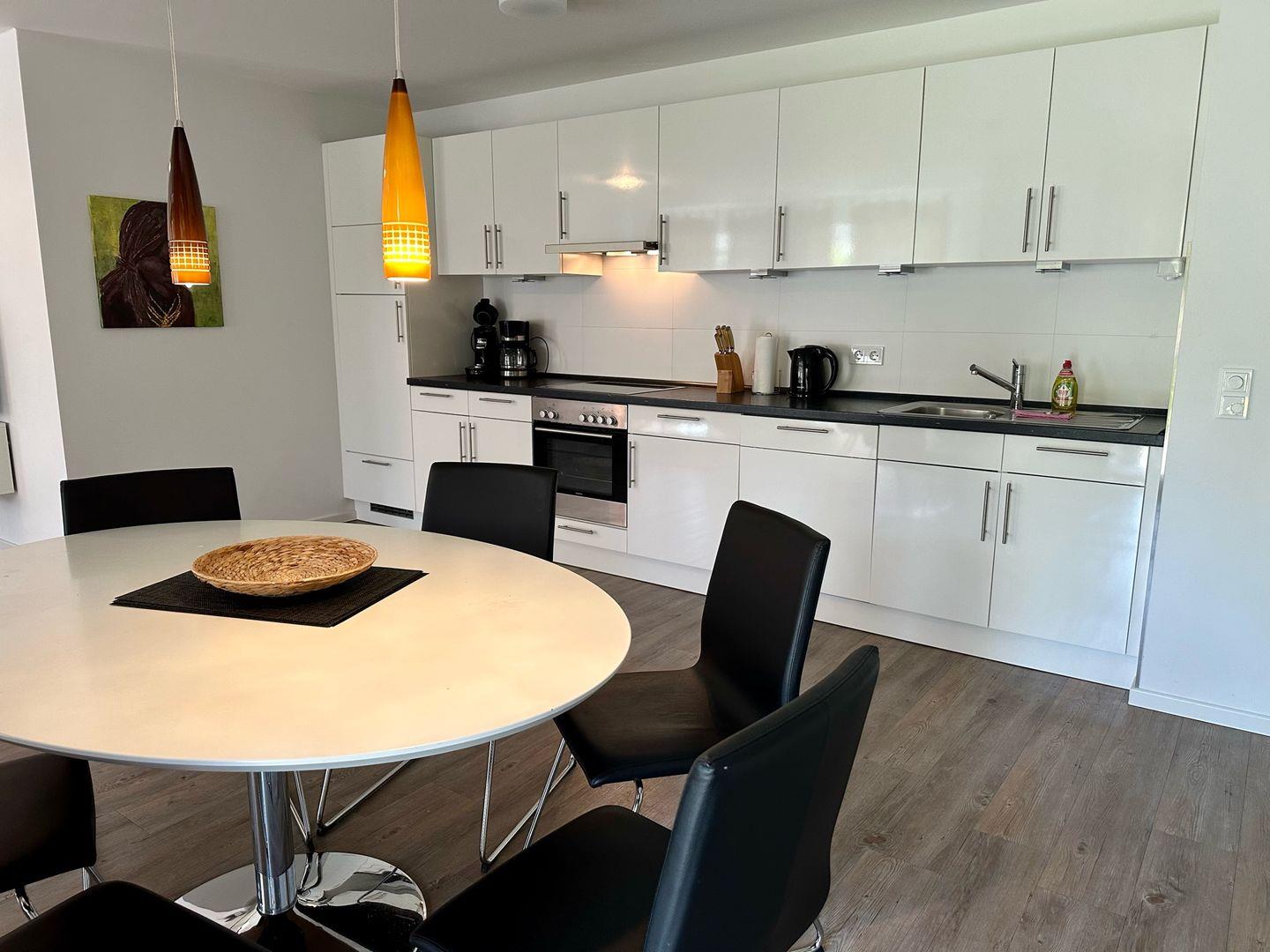Exklusive drei Zimmer Ferienwohnung im Obergeschoss mit Sonnenbalkon und mit gehobenem Komfort. Diese Wohnung verfügt über ein Schlafzimmer mit Doppelbett (2 x 90x200 cm), ein Kinderzimmer mit zwei Einzelbetten (90x200 cm) und sind mit Verdunklungsvorhängen ausgestattet. Also Platz für bis zu vier Personen. Ein großzügiges Badezimmer lässt hier Wohlfühlatmosphäre aufkommen. Die Couchgarnitur mit den Sitzmöglichkeiten am Essplatz laden zu einer längeren Verweildauer ein. Ein PKW Stellplatz und Waschmaschine sind selbstverständlich. Der Fahrstuhl bringt Sie direkt in die Wohnung, also Koffer schleppen passé. Die sehr geschmackvolle Möblierung prägt das Gesamtbild der Wohnung. Hier fehlt es an nichts. Einziehen, wohlfühlen und erholen! Dieses Objekt hat kein Internet.