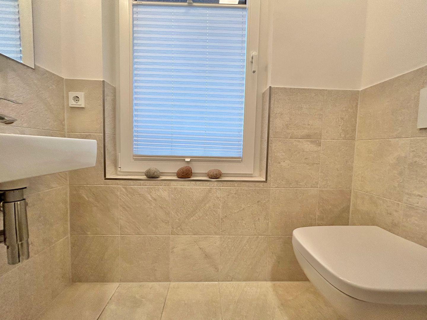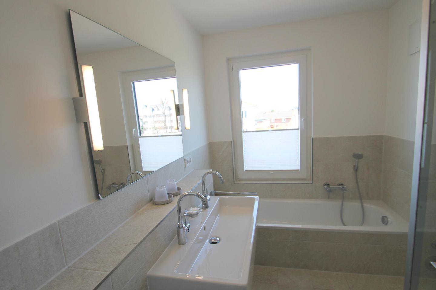 Das Badezimmer verfügt über eine bodengleiche Dusche, Waschbecken sowie eine Badewanne und ist durchdacht eingerichtet. Ein separates WC bietet Ihnen weiteren Komfort während Ihres Aufenthalts. Die Fußbodenheizung gewährleistet auch an kühleren Tagen eine angenehm warme Atmosphäre in allen Räumen. Das Rauchverbot sorgt für ein angenehmes Raumklima für Nichtraucher.