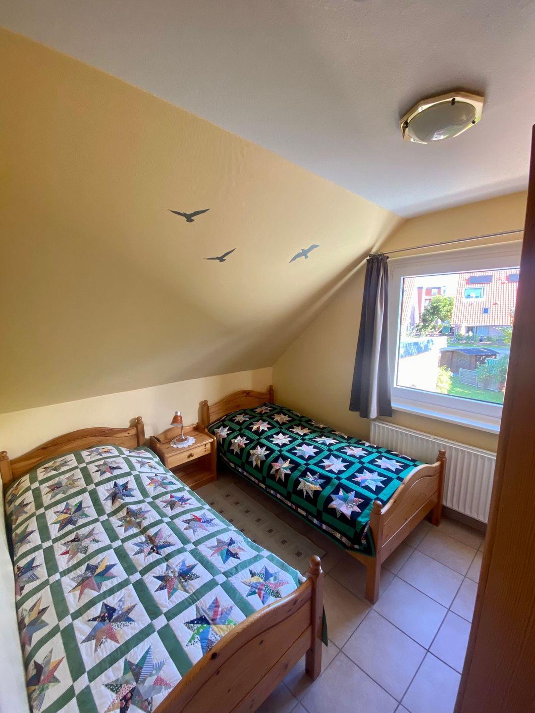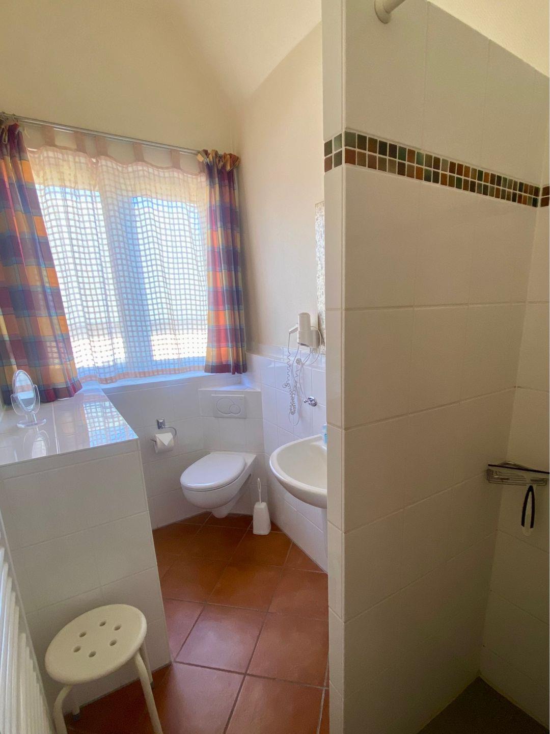 Komfortable Obergeschosswohnung eines strandnahen Zweifamilienhauses, die im gemütlichen Landhausstil eingerichtet ist. Sie hat zwei Schlafzimmer, eines mit Doppelbett und eines mit zwei Einzelbetten (Länge 190 cm). Das schöne Wohnzimmer mit gemütlichen Schrägen verfügt über einen offenen Durchgang zur Wohnküche. Das kleine Duschbad hat ein Tageslicht-Fenster. Der Waschtrockner im Heizungsraum steht Ihnen kostenfrei zur Verfügung. Die perfekte Umgebung ist für Ihre Erholung, auch für einen längeren Aufenthalt in Ihrem Lieblingsurlaubsort Dahme geeignet. Sie genießen die Mittags- und Abendsonne auf der herrlichen Westloggia. Eine ausreichende Bestuhlung mit Tisch und Sonnenschirm ermöglicht auch das Essen im Freien mit 4 Personen. Ihr gepflasterter PKW-Stellplatz befindet sich direkt auf dem Grundstück. Nicht nur Sonnenanbeter fühlen sich hier pudelwohl.