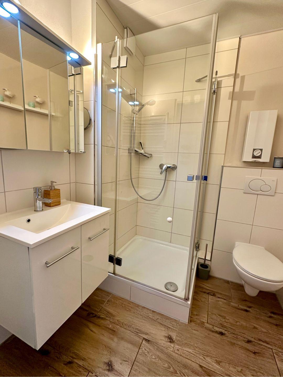 Die Wohnung bietet Raum für bis zu vier Personen: Ein Schlafzimmer mit komfortablen Betten und zusätzliche Schlafmöglichkeiten im Wohnbereich bieten genug Platz, um auch als Familie bequem zu residieren. Im modernen Badezimmer erwartet Sie eine bodengleiche Dusche, ein Haartrockner sowie ein angenehmes Raumklima dank Heizung.
