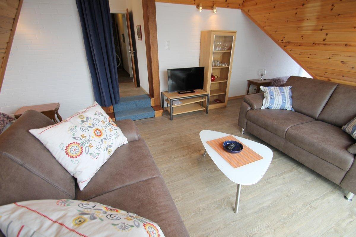 Diese großzügige zwei Zimmer-Ferienwohnung mit Südbalkon im 1.OG ist nur wenige Meter vom Strand entfernt in einer ruhigen Anliegerstraße gelegen. Sie verfügt über ein Wohnzimmer mit zusätzlich zwei Einzelbetten und ein Schlafzimmer mit Doppelbett. Ein großzügiges, modernes Duschbad und eine Wohnküche mit Spülmaschine vervollständigen die Ausstattung dieser Wohnung. Fahrradabstellmöglichkeiten sind auf dem Grundstück vorhanden. Für Ihren PKW ist ein Stellplatz am Haus reserviert.