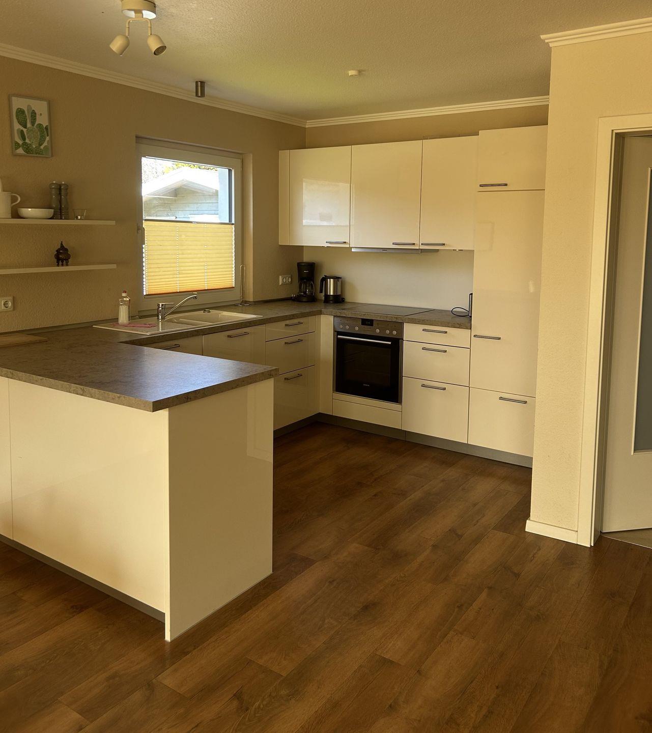 Schöne Doppelhaushälfte mit Platz für bis zu sechs Personen. Das Objekt liegt in einer ruhigen Sackgassenlage direkt am Kurpark und hat eine Wohnfläche von zirka 101 m², verteilt auf drei Schlafzimmer: Schlafzimmer (1) im 1.OG mit Doppelbett, Schlafzimmer (2) mit zwei Einzelbetten (80x200 cm), Schlafzimmer (3) im DG mit Doppelbett (140x200 cm), ein Wohn/Esszimmer mit offener Küche, zwei Bädern (mit fast bodentiefen Duschen).
