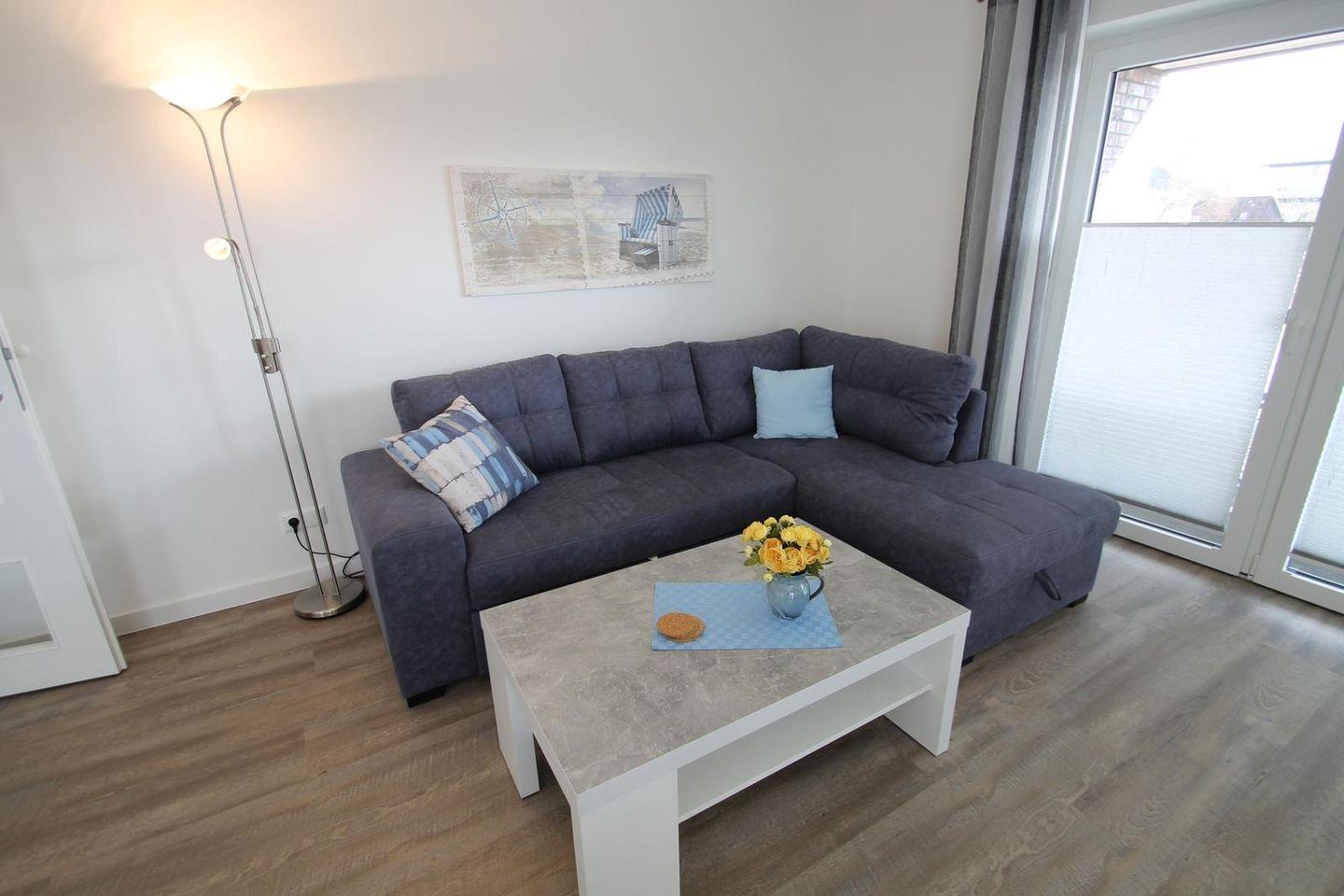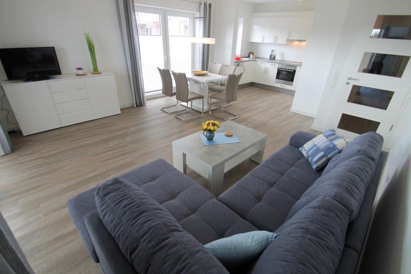 Komfortabel eingerichtete barrierefreie 3-Zimmer-Wohnung im 1. OG, nur 100 Meter vom Strand entfernt.