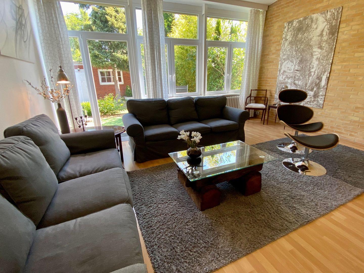 Familienfreundliches, sehr großzügiges Teil (Parterre) des Hauses mit Loftcharakter, ca. 175 m² Wohnfläche und im klaren Stil skandinavischer Gelassenheit eingerichtet. Eigene Infrarot - Sauna und 4 Schlafzimmer - mehr geht kaum!