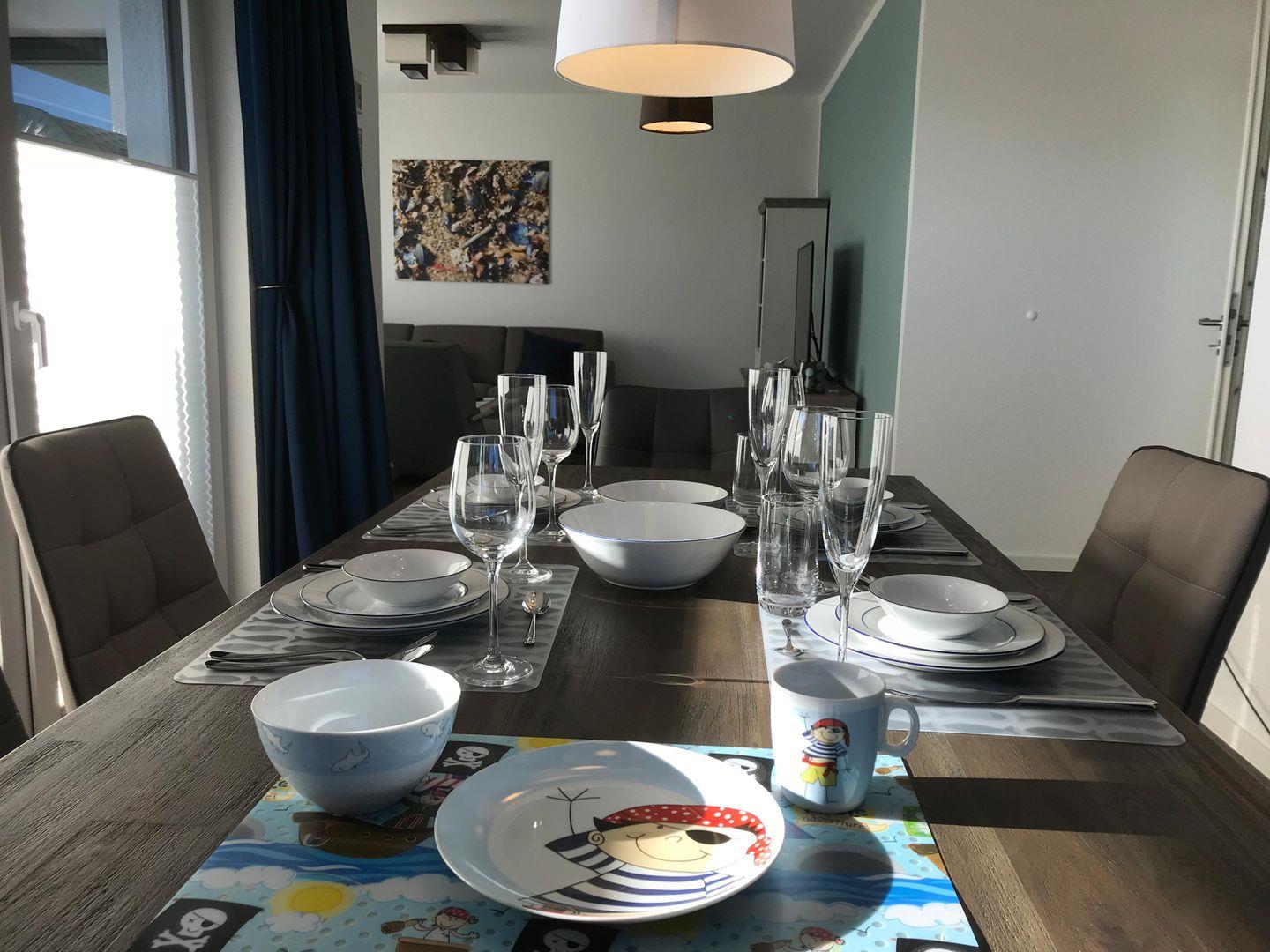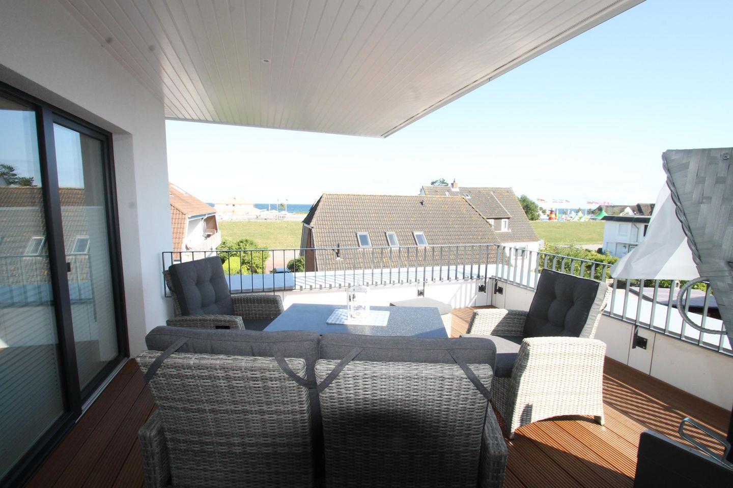 Modernes Penthouse mit Meerblick, großer Dachterrasse und Strandkorb, nur 100 m vom Strand in Dahme entfernt.