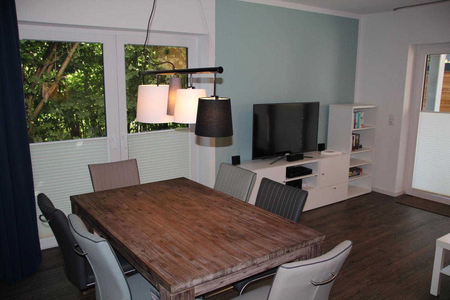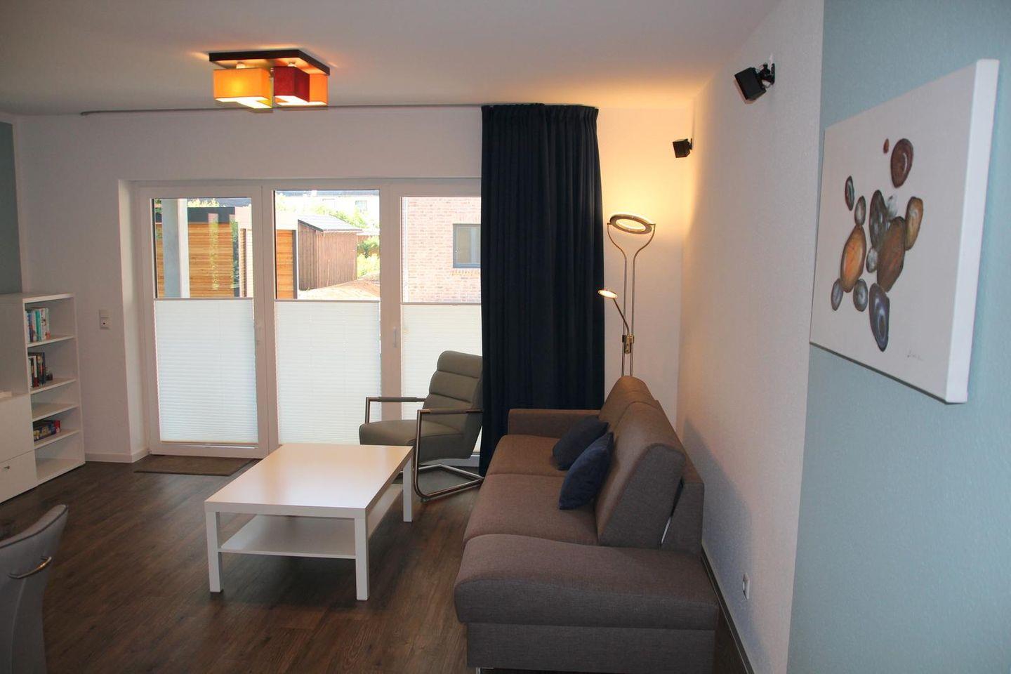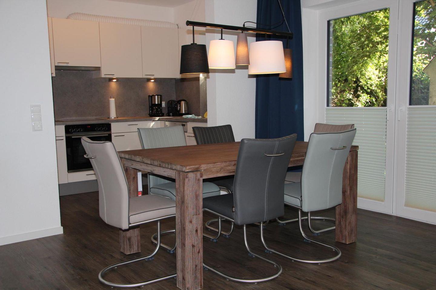 Strandnahe Neubau-Ferienwohnung direkt hinter dem Deich. Sehr liebevoll eingerichtete barrierefreie drei Zimmer EG-Ferienwohnung, nur 100 Meter vom Strand entfernt. Sie verfügt über zwei Schlafzimmer - eines davon mit TV, Wohn-/Esszimmer mit offener Küche, Satelliten Smart-TV, 5.1 surround sound, eine kleine Bücherauswahl und direktem Zugang zur Südterrasse. Duschbad mit bodentiefer Glas-Dusche, Föhn und Kosmetikspiegel, ein Abstellraum und der Waschtrockner vervollständigen diese Komfortwohnung. Hier fehlt auch nicht das Bügeleisen und das Bügelbrett. Eine sehr komfortable Schlafcouch ermöglicht auch die Belegung mit bis zu sechs Personen. PKW-Stellplatz direkt am Haus. Die Ausstattung und die direkte Nähe zum Strand lassen Ostseeträume wahr werden. Ziehen Sie einfach ein und genießen Sie von Beginn an. Hier ist jede Menge gute Laune vorprogrammiert! Auch Ihr lieber Vierbeiner ist herzlich willkommen.