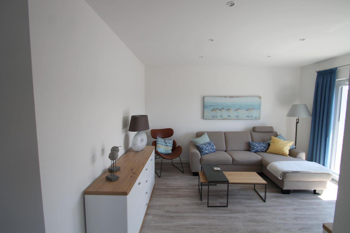 Stilsicher und geschmackvoll eingerichtete drei Zimmer Penthouse-Wohnung im 2. OG mit Dachterrasse und Teilmeerblick, nur 100 Meter vom Strand entfernt. Die Wohnung verfügt über zwei Schlafzimmer, Wohnzimmer mit offener Küche und direktem Zugang zur großen Dachterrasse. Diese schöne Terrasse ist bestens ausgestattet mit Möbeln und mit einem Strandkorb, damit Sie hier den Urlaub in vollen Zügen genießen können. Viele Raffinessen werden auch den technisch begabten Gast überzeugen. Liebevoll zusammengestellte Details. Ein großzügiges Duschbad mit bodentiefer Glas-Dusche, Föhn und Kosmetikspiegel, ein Gäste-WC und der Abstellraum vervollständigen diese Komfortwohnung. Elektrische Rolläden sorgen für einen ungestörten Schlaf. PKW-Stellplatz direkt am Haus. Koffer schleppen ade! Ein Fahrstuhl bringt Sie bis zur Wohnungstür. Auch Ihre Fahrräder finden hier ihren Unterstellplatz. Super Lage, tolle Wohnung, hier geht das Herz des Gastes auf. Einziehen, wohlfühlen. Das alles und viel Me(h)(e)r - nicht weniger, dürfen Sie erwarten.