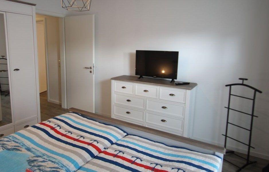 Die Wohnung verfügt über ein großzügiges Schlafzimmer mit Doppelbett (2 x 90x200 cm), großem Kleiderschrank und TV. Außerdem einem Wohnzimmer mit TV, einer Komfort-Schlafcouch für 2 Personen, einer schicken offenen Küche mit Essecke und direktem Zugang zur Südterrasse. Die Zimmer können mit den elektrischen Rollläden verdunkelt werden. Auf der Terrasse erwarten Sie moderne Möbel, ein original Ostsee Strandkorb und ein Elektrogrill. Über den großzügigen Flur erreichen Sie das das schöne Duschbad mit bodentiefer Dusche und einem zusätzlich beheizbaren Handtuchhalter. Zur kostenlosen Nutzung stehen im Abstellraum Waschmaschine und ein Trockner bereit. Das vorhandene Kinderbett kann zusätzlich aufgestellt werden. Ein kostenloser Privatparkplatz sowie ein abschließbarer Fahrradschuppen stehen Ihnen direkt am Haus zur Verfügung. Die Ausstattung und die direkte Nähe zum Strand lassen Ostseeträume wahr werden. Ziehen Sie einfach ein und genießen Sie von Beginn an.