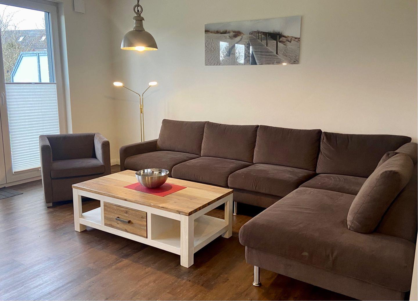 Die Ostsee und der Strand liegen nur etwa 150 Meter entfernt. Moin, Moin und herzlich Willkommen. Strandnahes Wohnen in ansprechender Wohlfühlatmosphäre. Flair und Chic geben in dieser großzügigen Haushälfte (zirka 115 m²) den Ton an. Nur wenige Schritte zu Fuß zum Strand. Die Wohnfläche verteilt sich wie folgt: Parterre: Hausflur, Technikraum mit Waschmaschine und Trockner, Abstellraum, Duschbad, Wohnzimmer mit offener Küche und direktem Zugang zum Garten und zur Westterrasse. Im OG befindet sich das Vollbad. Schlafzimmer (1) mit Doppelbett (2 x 90x200 cm) + TV, Schlafzimmer (2) mit Doppelbett (2 x 80x200 cm), Schlafzimmer (3) mit zwei Einzelbetten (90x200 cm) + TV, Schlafzimmer (4) im DG mit Doppelbett (2 x 90x200 cm). Rollläden, W-LAN und 2 PKW-Stellplätze ergänzen die Komfortausstattung des Hauses. Bis zu 2 Hunde sind hier herzlich willkommen.