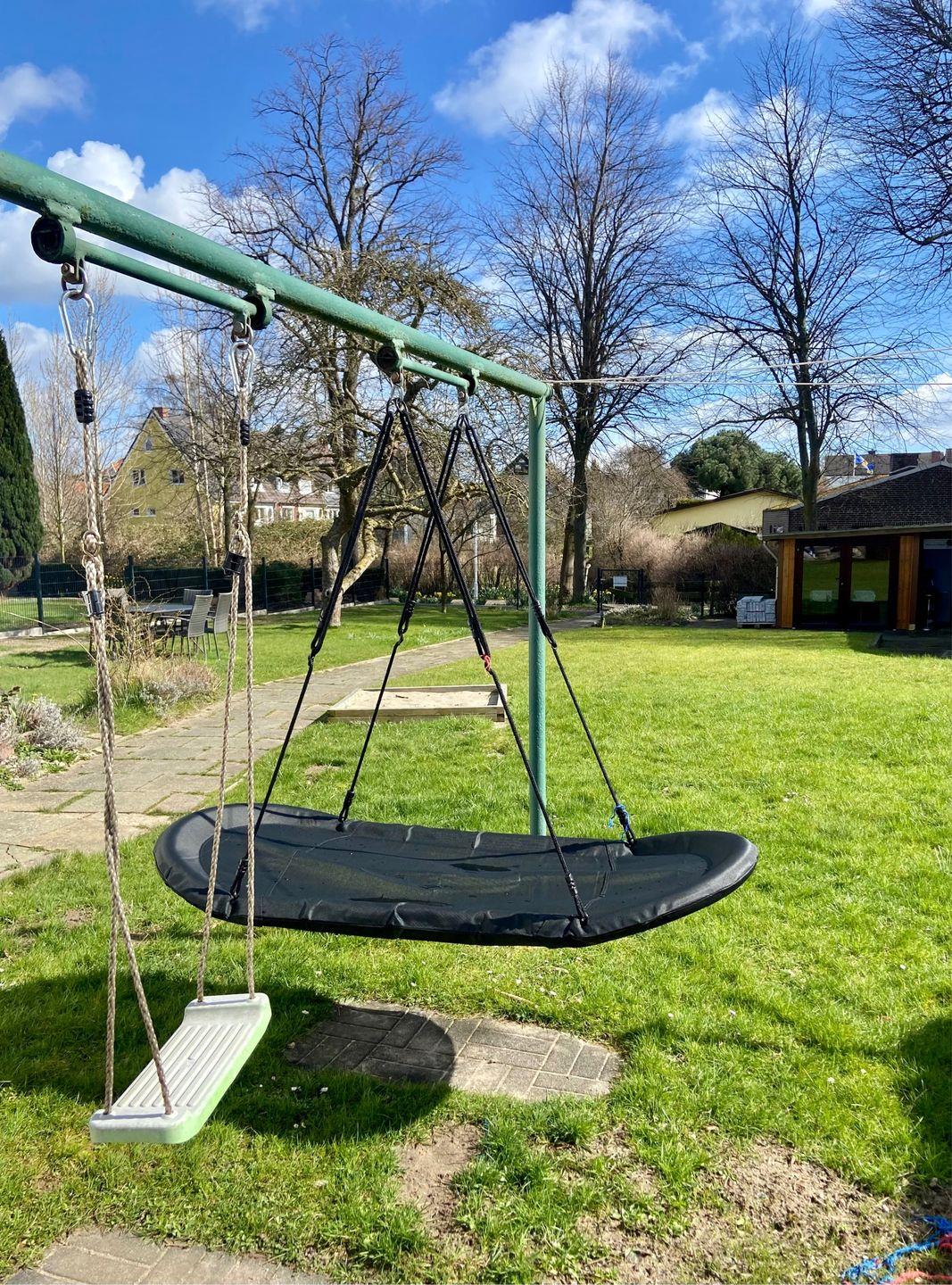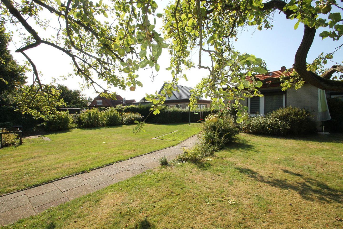 Ein Freisitz im Garten lädt zum Verweilen ein. Hier können Sie die Sonne genießen, entspannen und die frische Luft in vollen Zügen auskosten, während die Gartenmöbel einen komfortablen Platz zum Sitzen bieten. Der Garten, der das Haus umgibt, ist ideal für Spiele mit den Kindern oder einfach zum Entspannen in der Natur.