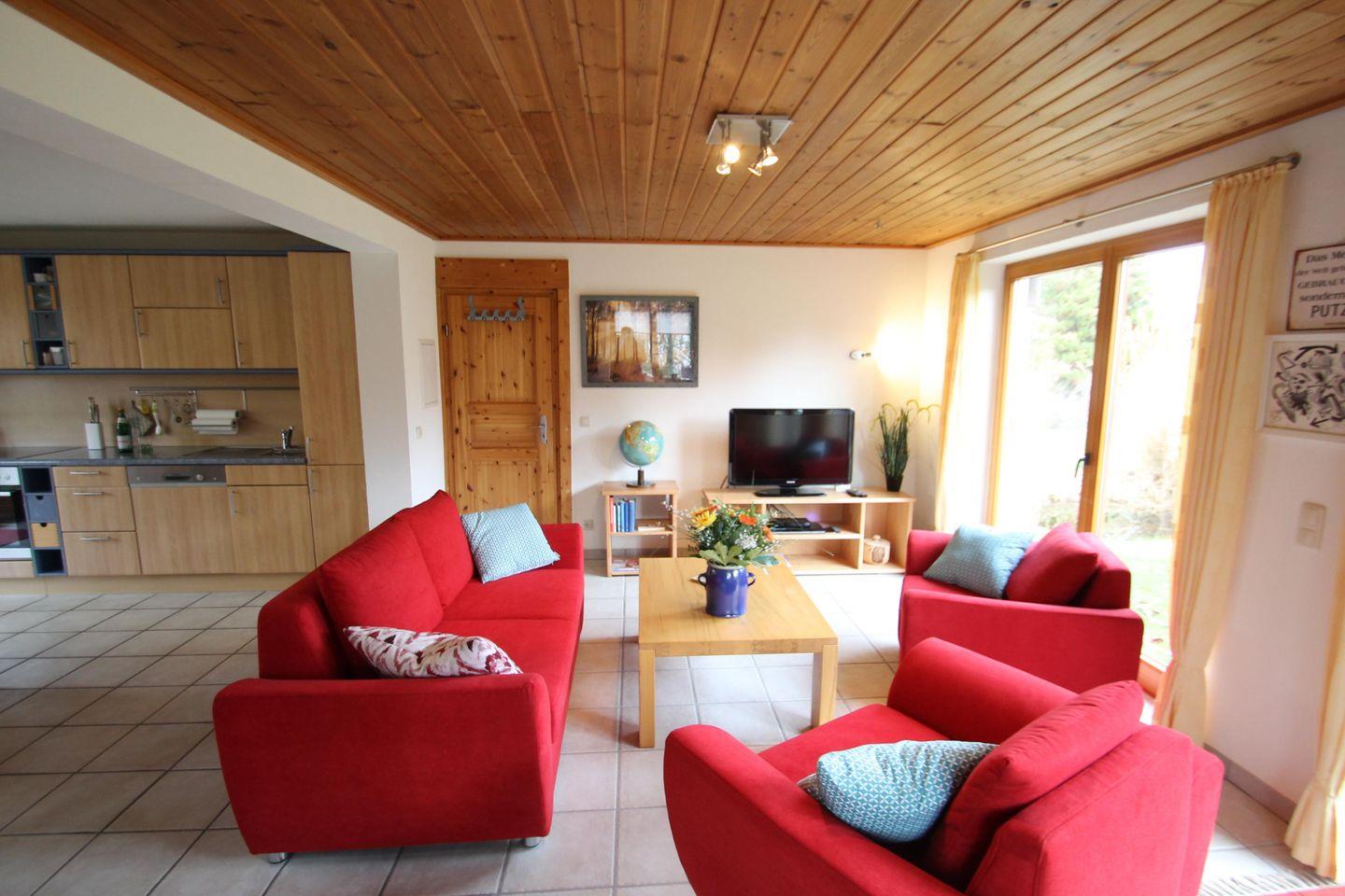 Das Ferienhaus Anexe befindet sich in einer verkehrsberuhigten Einbahnstraße. - Das charmante Haus liegt inmitten eines sehr schön angelegten Naturgartens. Das Wohnzimmer mit der offenen Küche und dem separaten Essbereich wirkt durch die bodentiefen Fenster sehr hell und freundlich. Im Erdgeschoss befindet sich das Bad und ein separates Schlafzimmer mit Doppelbett (2 x 90x200 cm) für zwei Personen. Über eine offene Raumspartreppe gelangt man in das Obergeschoss mit einem weiteren Schlafzimmer mit Doppelbett (mit 2 x 90x200 cm) und einem Kinderreisebett (5. Person), sowie einem separaten WC. Alle Böden sind gefliest und zum Teil mit Holzdielen verarbeitet. Weil im Haus keine Teppichböden verwendet wurden, ist das Haus auch sehr gut für Allergiker geeignet. Das Hausangebot wird ergänzt durch einen Fahrradschuppen mit hauseigenem Bollerwagen, der von den Gästen des Hauses genutzt werden kann. Möchten Sie mit der Familie oder mit Freunden gemeinsam verreisen? Idealerweise vermieten wir auch das Haus Groß (Objekt 5085) direkt nebenan - Jetzt fehlen nur noch Sie!