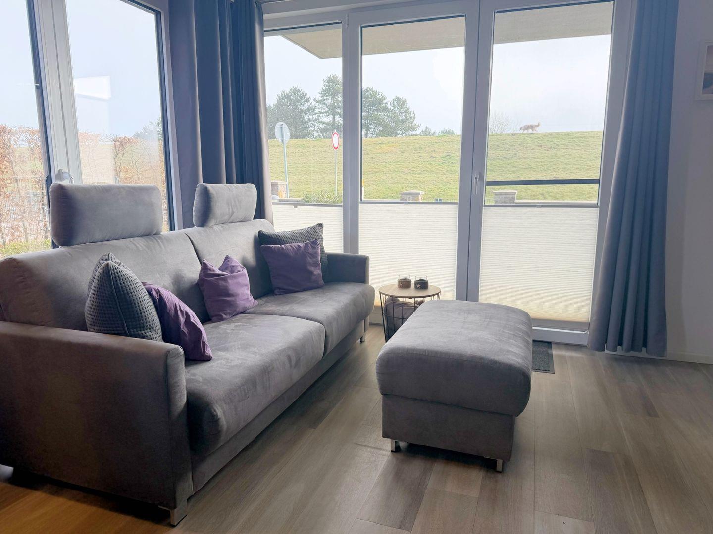 Neubau! Top ausgestattete, sonnige und ruhige 56 m² große 2 Zimmer Ferienwohnung für zwei bis vier Personen direkt am Deich von Dahme. Die Wohnung liegt im Parterre und hat eine schöne Terrasse mit angrenzendem kleinen Garten, der mitbenutzt werden darf. Ob junges Paar, junge Familie, Best Agers oder Senioren, die Wohnung in unmittelbarer Strandnähe bietet allen den perfekten Ort für die schönsten Tage im Jahr. Der Strand für das vierbeinige Familienmitglied ist keine 200 m entfernt. Die großen Fenster lassen viel Helligkeit in die gemütliche Wohnung, in der es an nichts fehlt, was einen Urlaub lebens-und liebenswert macht. Die moderne, in den Wohnraum offen integrierte Küche mit Spülmaschine, Induktionskochfeld, Senseo- sowie Kaffeemaschine und vielen weiteren Annehmlichkeiten wird Sie überzeugen. Hier befindet sich auch das komfortable Schlafsofa (160x200 cm mit Ergoflex Lattenrost und hochwertiger Matratze) für zwei Personen. Im Schlafzimmer befindet sich neben dem zweiten TV ein bequemes Boxspringbett (180x200 cm). Das Badezimmer überzeugt mit viel Tageslicht und großer, begehbarer Dusche und einem beheizbaren Handtuchhalter. Außerdem finden Sie hier den Waschtrockner. Zur Wohnung gehört der eigene PKW-Stellplatz direkt am Haus. Die Fußbodenheizung sorgt auch in der Übergangs- und Winterzeit für eine wohlige Wärme. Stilsicher, stylisch und strandnah - wünscht man im Urlaub me(e)(h)r?
