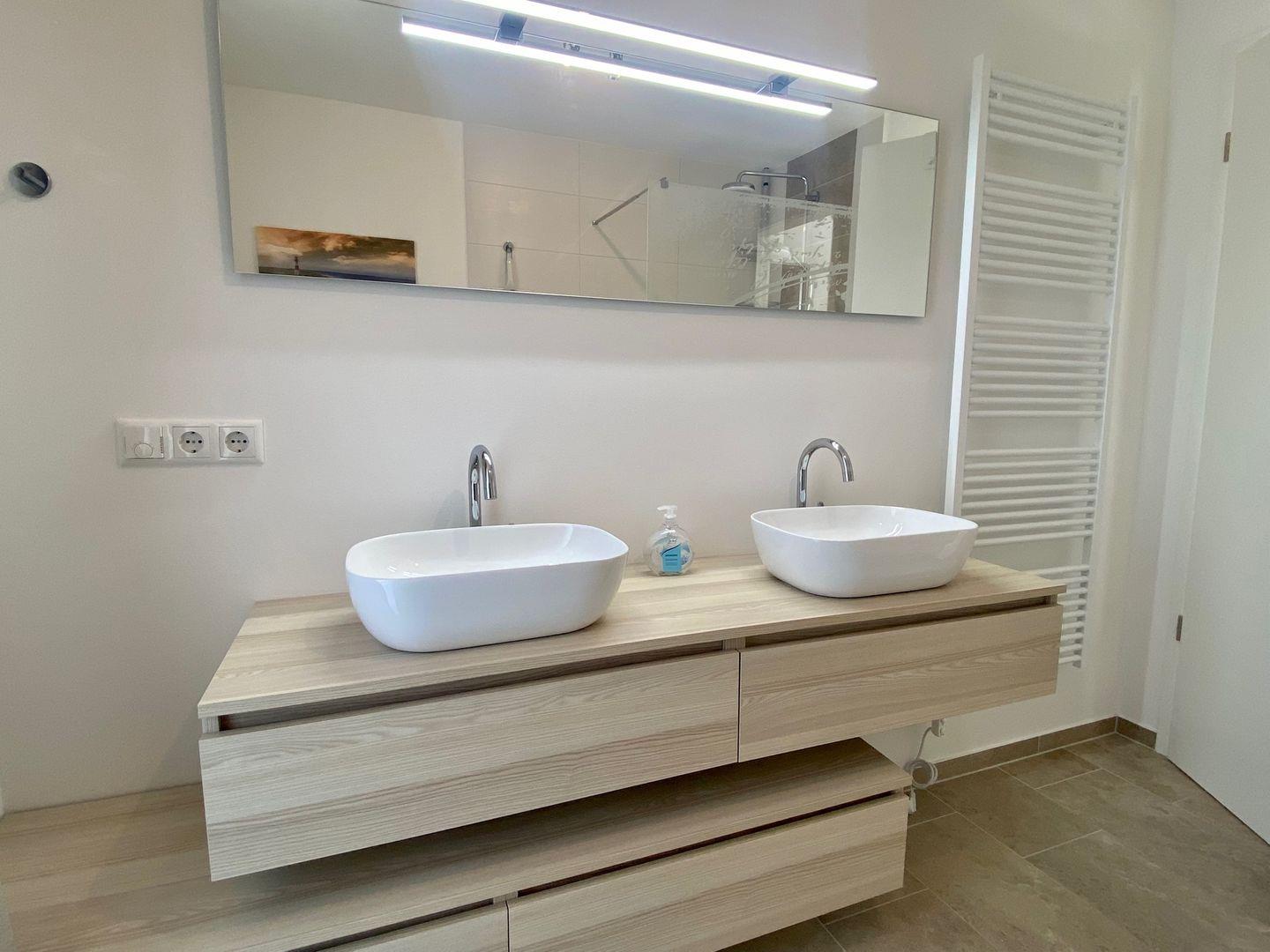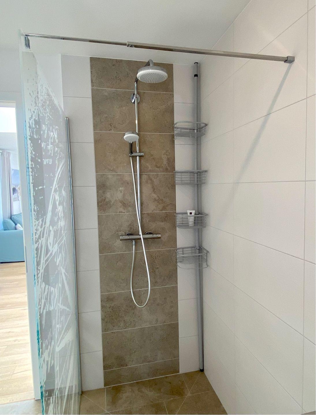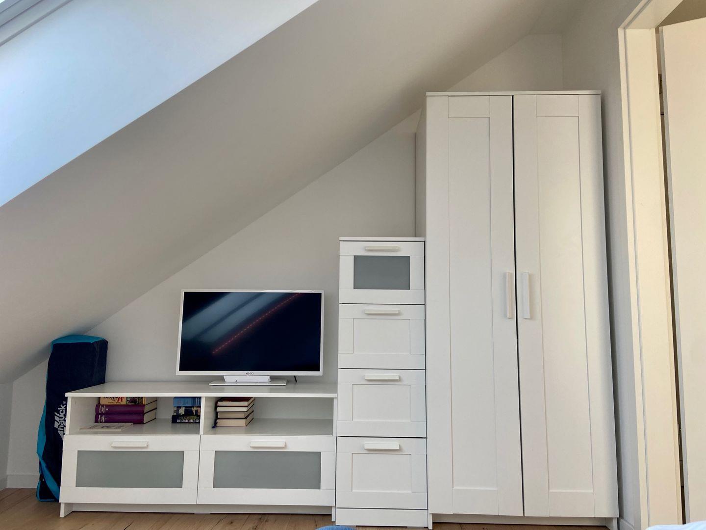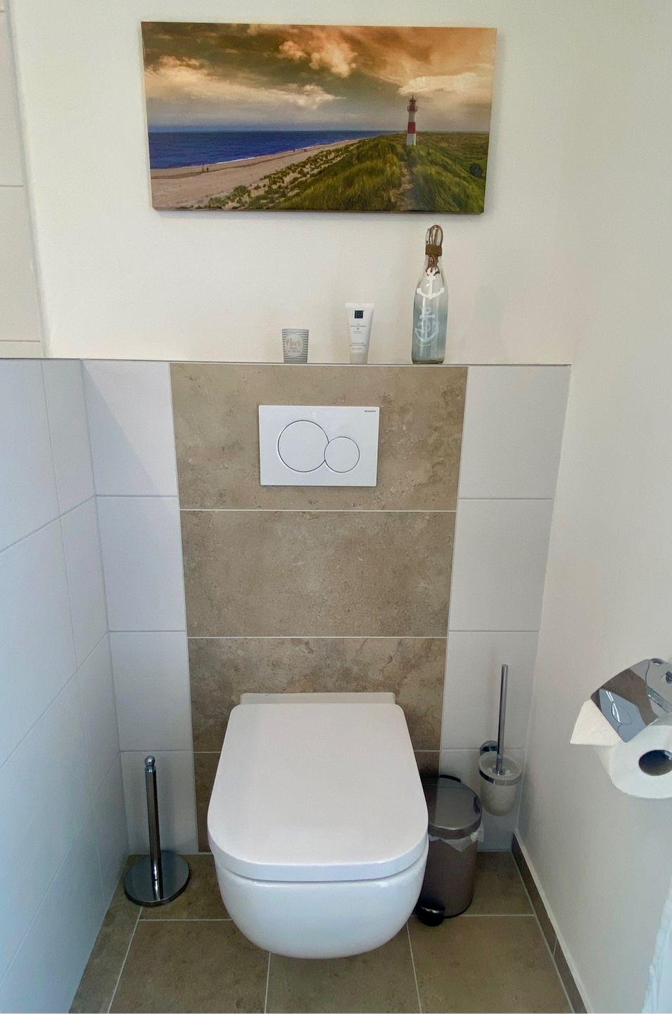 Genießen Sie in der stilsicher eingerichteten Ferienwohnung im Obergeschoss in einer Wohneinheit mit vier Ferienwohnungen Ihren Urlaub. Diese 3-Zimmer-Neubauwohnung mit großer Dachterrasse überzeugt auf über 100 m² mit jeglichem Komfort. Die 3 Zimmer bieten Platz für bis zu 4 Personen. Die Ferienwohnung überzeugt durch eine moderne und hochwertige Ausstattung. Kleine maritime Akzente spiegeln mit viel Liebe zum Detail die Nähe zum Meer wieder. Das leichte Farbschema in der Ferienwohnung wirkt durch die Aufteilung im Raum, frisch aber dennoch gemütlich. Sehr bequeme Couchlandschaft und Kaminofen für kalte Wintertage. Der Wohnraum ist zur Küche hin offen gestaltet und die vielen Fenster im Dachgeschoss lassen die Wohnung noch größer erscheinen, als sie schon ist. Zwei Schlafzimmer - das Elternschlafzimmer mit Doppelbett (1 x 180x200 cm) und das Kinderzimmer mit Tagesbett wo im Handumdrehen Platz für Übernachtungsgäste geschaffen wird. Einfach die Liegefläche herausziehen und schon haben Sie ein bequemes Doppelbett (2 x 80x200 cm)! Selbstverständlich können Sie die Veluxfenster in den Schlafzimmern verdunkeln. Ein Wohlfühlbad mit bodengleicher Dusche und ein Gäste-WC gehören ebenfalls zur Wohnung. Besonderes Highlight dieser Wohnung ist zweifelsohne die ca. 30 m² große Dachterrasse in Südwest-Sonnenlage - ebenfalls mit Strandkorb und Lounge-Möbeln. Ein PKW-Stellplatz vor dem Haus gehört zu dieser Wohnung. Ihre mitgebrachten Fahrräder können Sie im Garten abstellen. Ein gemütlicher Grillplatz im Garten lädt zum Verweilen ein. Und sollten Sie doch mal arbeiten wollen, finden Sie im Schlafzimmer einen Schreibtisch mit LAN-Kabel. Der WLAN-Anschluss ist inklusive. Ein Kinderbett und ein Kinderhochstuhl sowie ein Bollerwagen für die kleinen Gäste gehören zur Grundausstattung. Für Ihren PKW steht Ihnen eine Wallbox zum Laden Ihres E-Autos gegen eine Tagespauschale in Höhe von 10,- € zur Verfügung. Die Pauschale kann nur für den gesamten Aufenthalt dazu gebucht werden. Sprechen Sie uns für weitere Informationen gerne an.