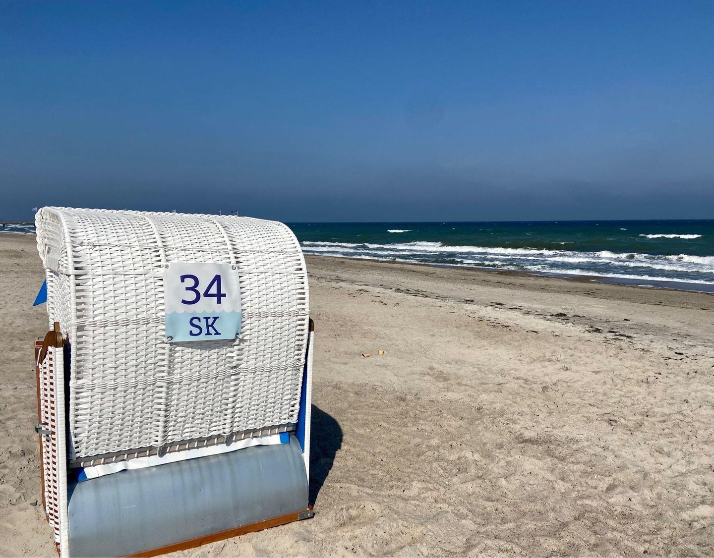 Gemütliche 2-Zimmer-Ferienwohnung in Dahme mit Strandkorb am Wasser und großer Dachterrasse.