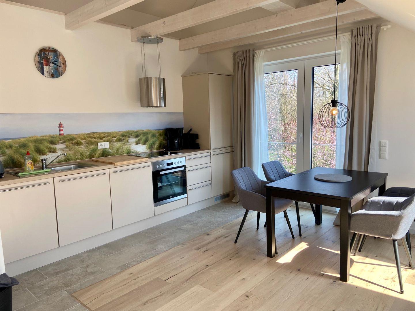 Am schönen Dahmer Strand wartet ein kostenloser Strandkorb (in der Saison vom 01.04. - 30.09.) auf Sie und auch auf der Dachterrasse haben Sie die Möglichkeit, entspannte Zeit im eigenen Strandkorb zu verbringen. Denn diese schick eingerichtete Ferienwohnung bietet auf 100 m² Platz für die ganze Familie. Die Wohnung im ersten Obergeschoss ist in einer kleinen Wohneinheit mit nur 4 Ferienwohnungen in ruhiger Kurparklage. Großzügig und hell eingerichtete Ferienwohnung für 4 Personen mit sehr bequemer Couchlandschaft und Kaminofen für kalte Wintertage. Großzügiges Wohnzimmer mit offener, geräumiger Küche. Die Küche ist komplett ausgestattet und lässt keine Wünsche übrig. Die bodentiefen Fenster lassen die Wohnung noch größer erscheinen, als sie schon ist. Zwei Schlafzimmer -