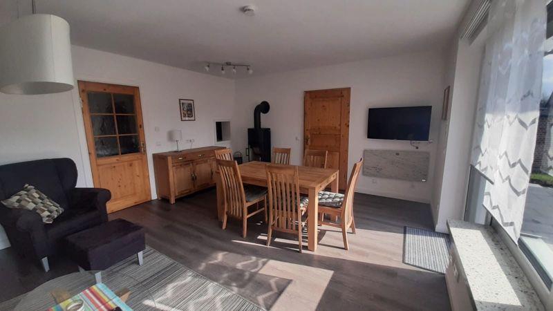 Charmante Ferienwohnung am Deich von Dahme, nur 50 Meter vom Strand entfernt, mit Terrasse und Gartenzugang.