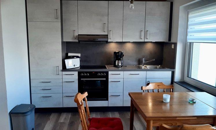 Gemütliche Ferienwohnung am Deich in Dahme, nur 50 Meter vom Strand entfernt, mit Balkon und moderner Ausstattung.